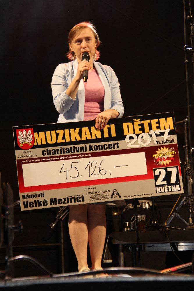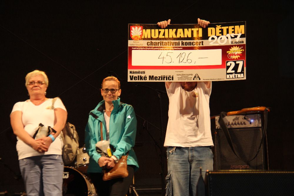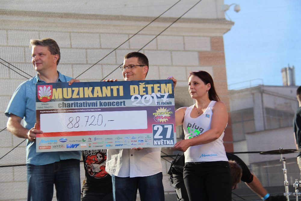V průběhu odpoledne a večera převzala z rukou starosty města Radovana Necida a pořadatelů koncertu ředitelka Alitery, Tereza Axmanová, dva šeky. První, partnerský, nesl po odečtení nutných nákladů na realizaci koncertu částku 88.720 korun. Druhý, sestávající se z tržby na občerstvení, příspěvků v kasičkách a prodeje upomínkových předmětů s logem Muzikanti dětem, ukázal překvapivou částku 45.126 Kč.