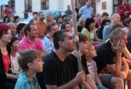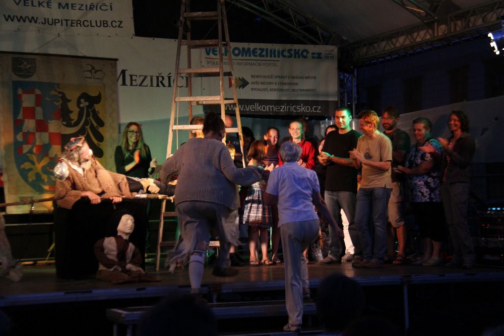V dialozích profesora španělského jazyka a Anchy, pracující jako vychovatelka v kominickém internátu ve Šlapanicích, převlečených do kostýmů postav Dona Quijota a Sancho Panzy, nechyběl humor, nadsázka ani reflexe současných problémů našeho města. Zejména budoucí úpravy náměstí: "Snad nám to dobře dopadne!" povzdechl si rytíř Qujiote, "I to náměstí v Meziříčí." Do děje byli herecky postupně zapojeni téměř všichni diváci, například princeznu Dulcineu si zahrála Jana Mikysková. Režijním poradcem hry je Bolek Polívka, který pro formální stránku představení zvolil cestu didaktické klaunikyády. Jejími charakteristickými znaky jsou absurdita, mystifikace, legrace, improvizace, provokace, recese, komunikativnost a především otevřenost a hravost. A to vše včerejší hra, která má letos 4 500 repríz, dokonale naplňovala.