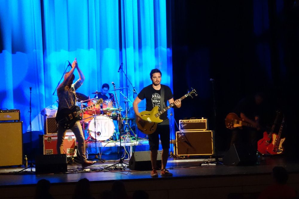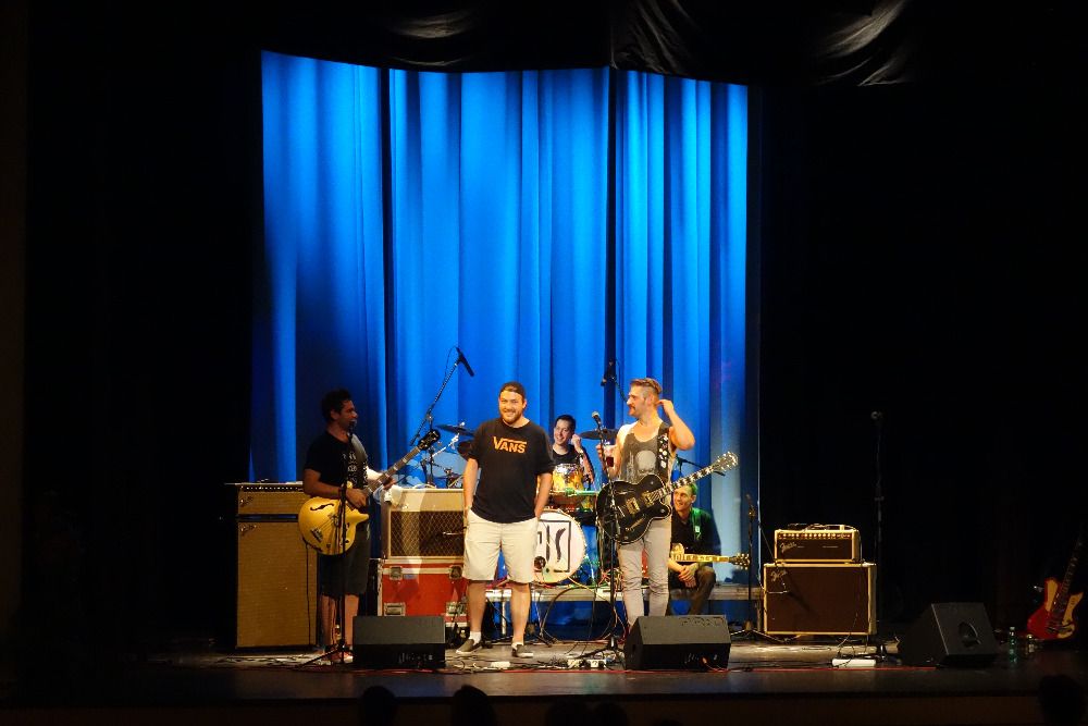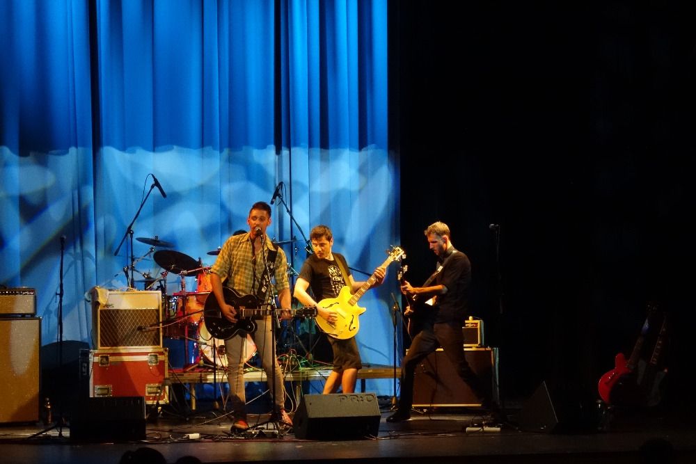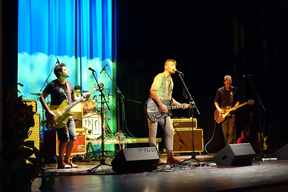 Po pátečním vystoupení TH!S Vojty Kotka přinesl sobotní večer další perličku z bohaté nabídky Kulturního léta. Tou byl dvojkoncert hudebních skupin z Vysočiny. Jako první se na pódiu představila punk-rocková skupina z Jihlavy, Vzhůru a níž.