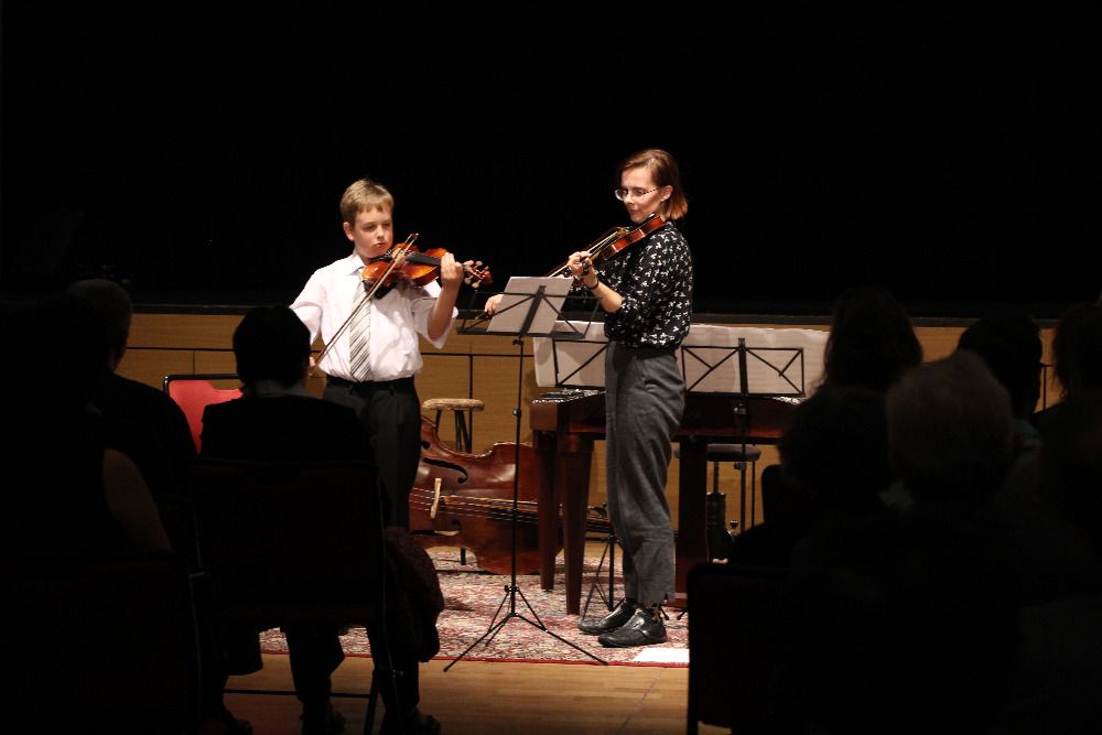 Večerní vystoupení zahájily tři lidové písně v podání žáka Základní umělecké školy Patrika Žejška (housle), kterého doprovodila Hana Novotná.