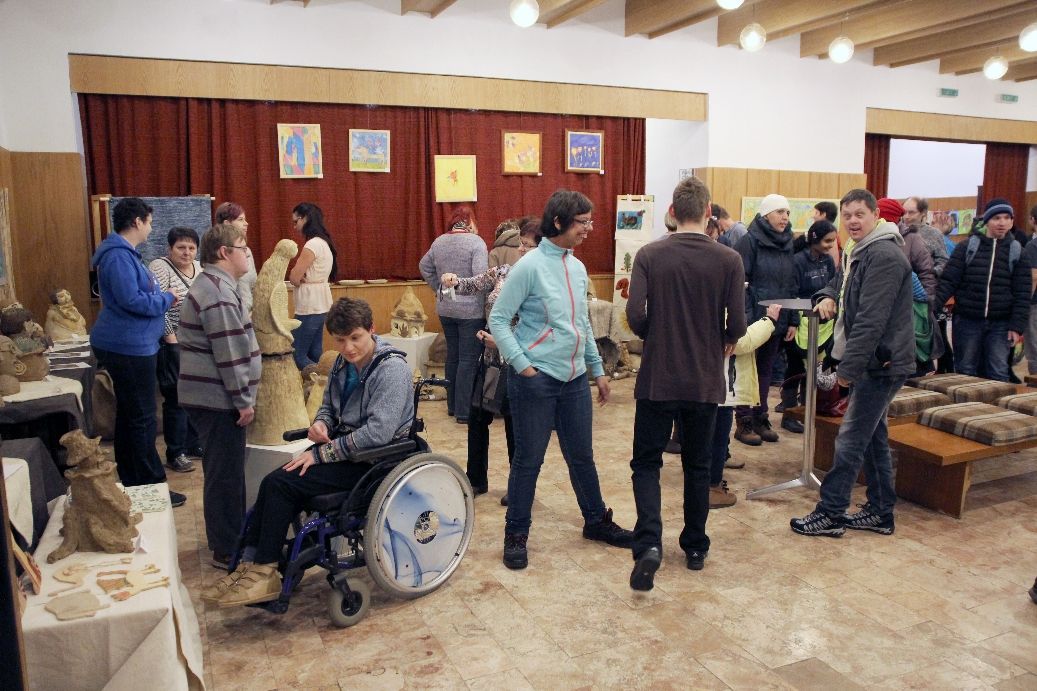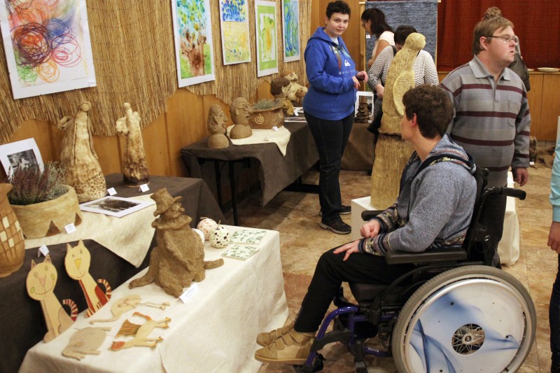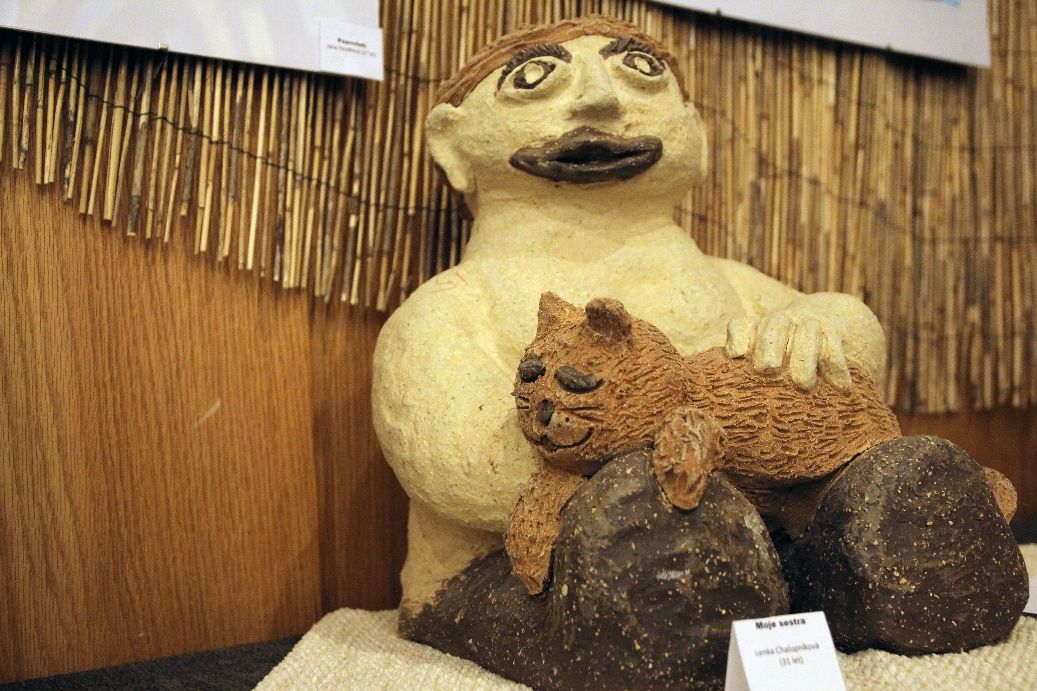 Prodejní výstava klientů březejckého pracoviště Centra Kociánka proto nese příznačný název Všemi smysly a nesmysly. Uvidíte na ní převážně výtvory z hlíny a textilu – sochy, keramické obrazy na zeď malby na hedvábí, loutky, koberečky, tašky a další. „Loutky s kašírovanými a textilními prvky, půvabné, něžné, lehkým opuncováním orientu poznamenané obrazy na hedvábí překypují flórou a faunou, rozkvetlá louka a pavučiny, lesní samoty, mořské hlubiny, líbezní andělé…“ přiblížila návštěvníkům dílo Březejckých Eva Kočí Valová při vernisáži. Ta proběhla v pátek 24. listopadu odpoledne. Představili se při ní i sami uživatelé a zaměstnanci střediska. Připravili si pěvecké a taneční vystoupení, prezentovali projekt Autismo Burgos. Závěrem pak zahrála skupina Žalozpěv.