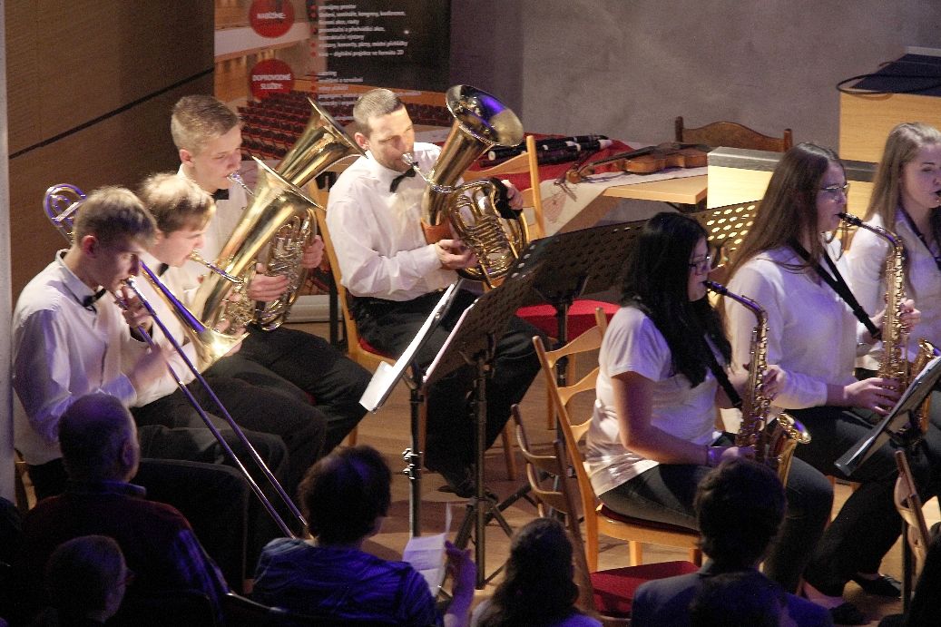 Půlhodinka volna posloužila k rychlé výměně účinkujících a mohl začít večerní koncert v režii základní umělecké školy. Ta představila svoje obory hudební i literárně-dramatický. Žáci uváděli i vystupovali. Předvedly se malé soubory dechových nástrojů, flétny, saxofony, pěvecké sbory Andantino i Andante a samozřejmě oba orchestry – smíšený i taneční. Hudbu a zpěv zpestřila recitace. Závěr patřil tradičním koledám Tichá noc a Narodil se Kristus Pán.