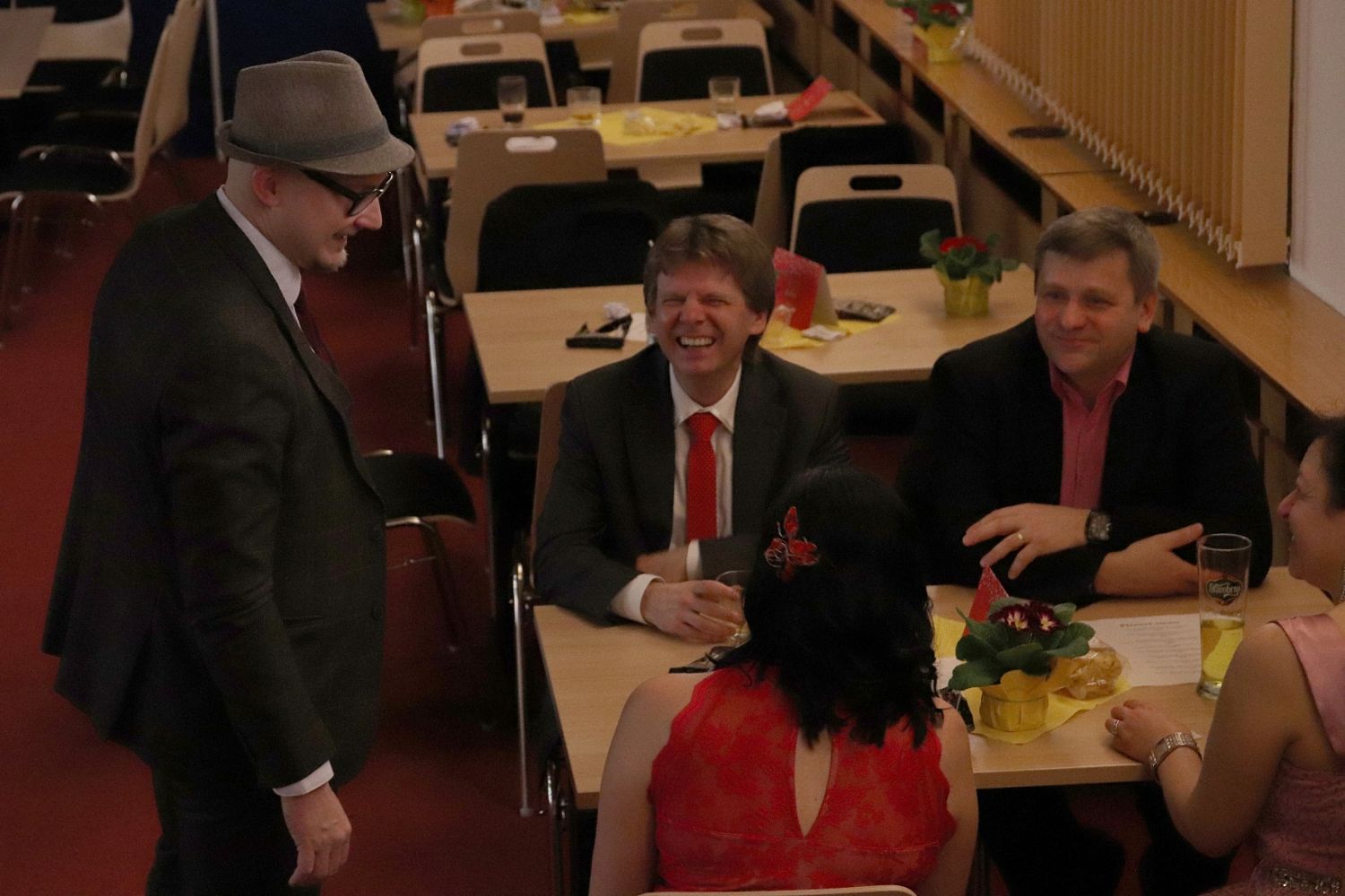"Pobavte se a vůbec nic si nedělejte z toho, zda jste nešťastní nebo šťastní z výsledku voleb. Druhé kolo třeba dopadne lépe. Přeji vám všem příjemnou zábavu," přivítal starosta města Josef Komínek hosty plesu právě v den, kdy skončilo první kolo volby prezidenta. Vzápětí na sál vtančila dvojice Karolína Trutnová s Danielem Vojtěškem, kteří návštěvníky plesu potěšili ukázkami standardních a později i latinskoamerických tanců. Pár z Taneční školy Starlet vystřídal Petr Kolář, který rozproudil zábavu směsicí vlastních i převzatých písní, jež si lidé s chutí zazpívali spolu s ním. K pohodě přispíval i kouzelník, který chodil stůl od stolu a bavil přítomné svými kousky.