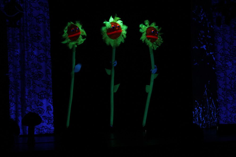 Během hodinu trvající loutkové revue se dětem představily nejrůznější loutky v nadživotní velikosti. Přivítány byly Sluncem a Měsícem, kterému se nechtělo jít na kutě. Ale když mu Sluníčko slíbilo sen o tom, co se během dne děje na paloučku, dal si říct. Palouk to byl opravdu kouzelný, ráno si slunečnice zatančily na Macarenu, žabí přátelé Kvak a Kvik si zahráli fotbal a myší tanečník Kik to rozbalil ve stylu kovboje. Papíroví draci provedli děti po světě, od žhavé pouště před deštný prales až na návštěvu k Eskymákům.