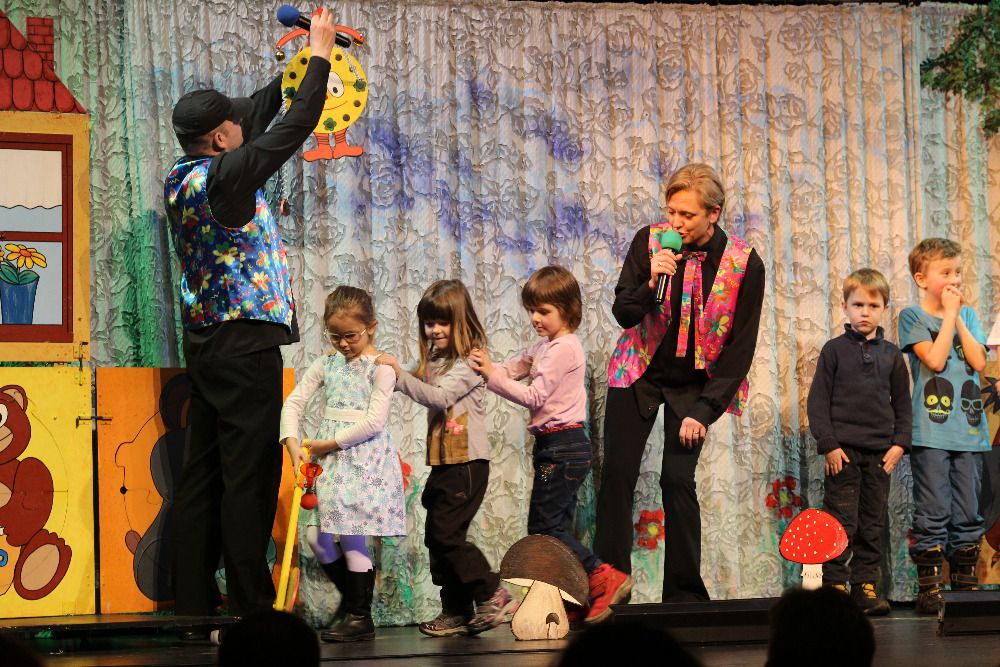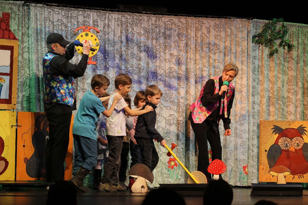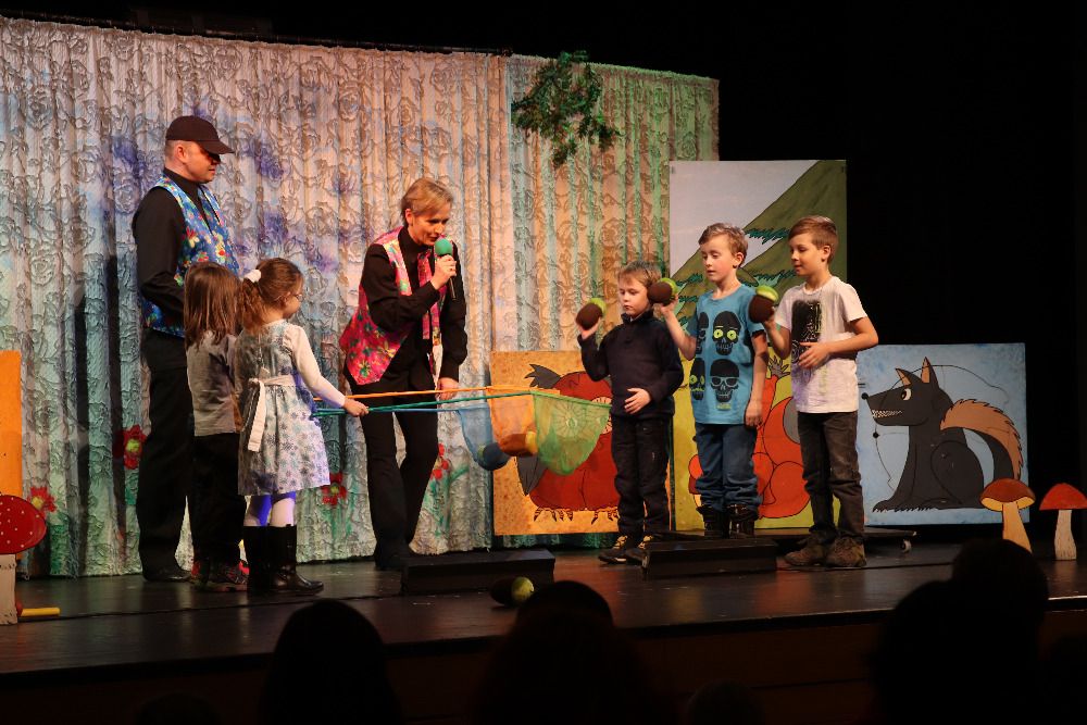 Děti přirozeně reagovaly na dění na jevišti a šest se jich zapojilo do připravené soutěže. V ní mohly prověřit svou zručnost v hodu na cíl, postřeh při skládání puzzle a i rychlost při běhu slalomem mezi houbami.