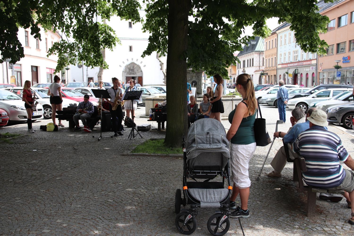 Ve veřejném prostoru se představili nejen hudebníci, ale i výtvarníci a děti z literárně-dramatického oboru.