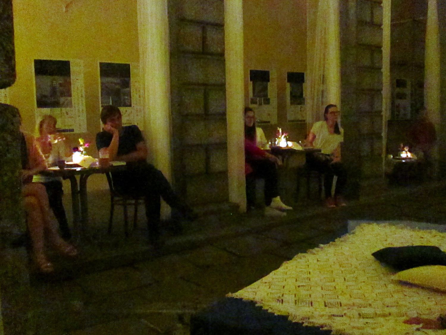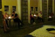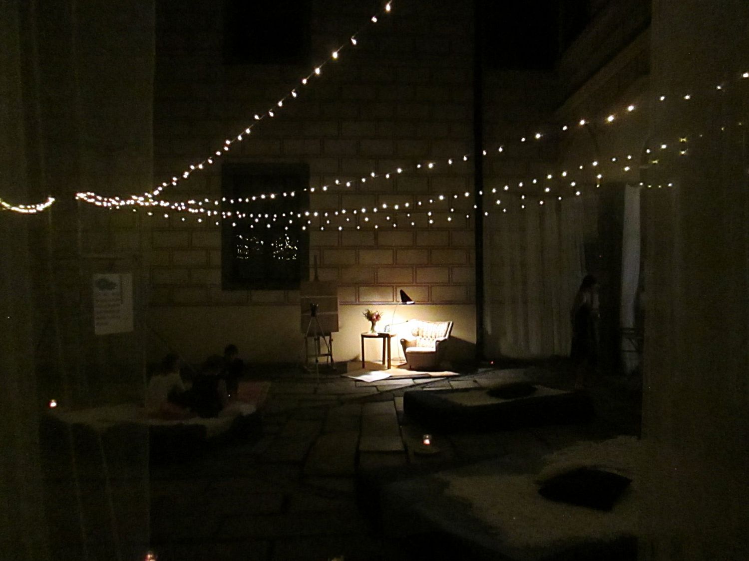 Jasné nebe s hvězdami se klenulo nad záplavou zářících světýlek a nedočkaví hosté usazení u kavárenských stolečků a uvelebení na modravých leženích čekali na první slova, verše a pasáže z vybraných knih, srdcovek, v atriu luteránského gymnázia (LuGy), bývalého pivovaru i „ZUŠky“.