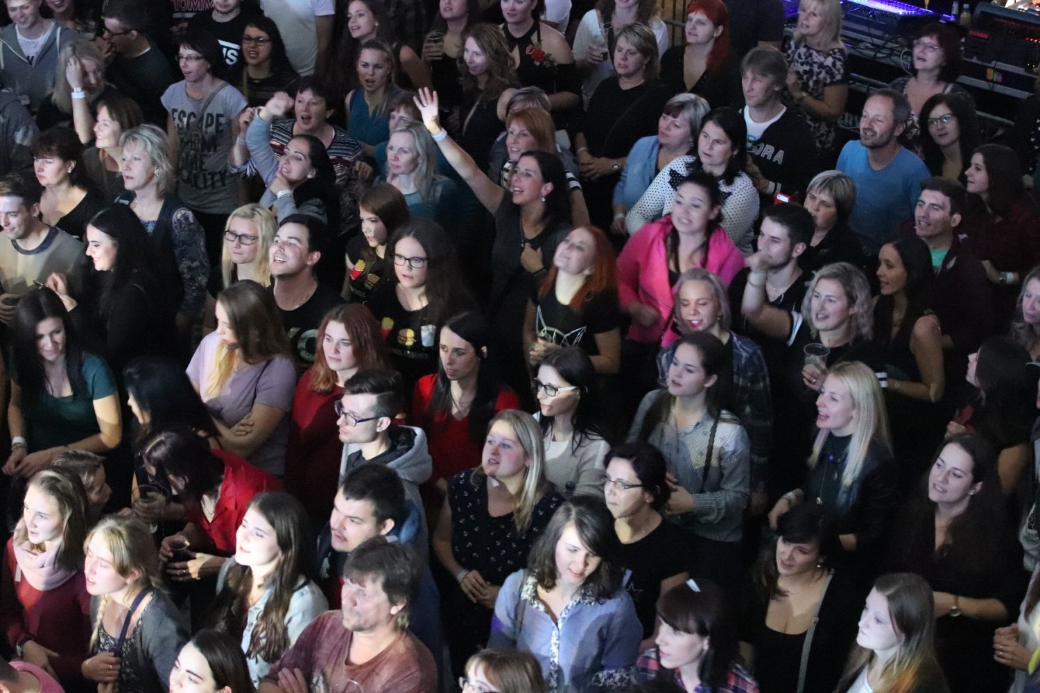 Celý sál si spolu s kapelou zazpíval třeba oblíbené Šrouby a matice, Hledá se žena, Františkovy Lázně či Ona se smála.