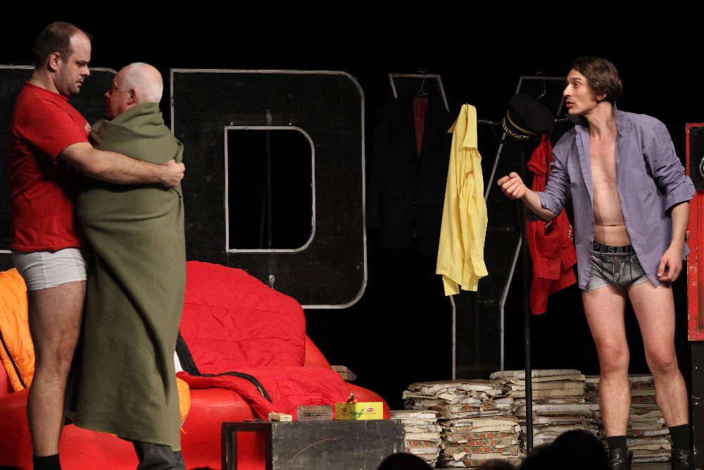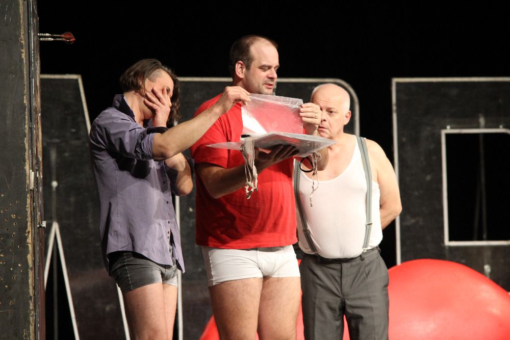 „My muži nemáme vnitřní svět, my máme pivo, fotbal a kamarády,“ zaznělo ve čtvrtek v představení německo-islandského dramatika Kristofa Magnussona. V hlavních rolích černé komedie Kutloch anebo I muži mají své dny se meziříčskému publiku představili Bohumil Klepl, Petr Bláha, Roman Štabrňák a Václav Jílek.
