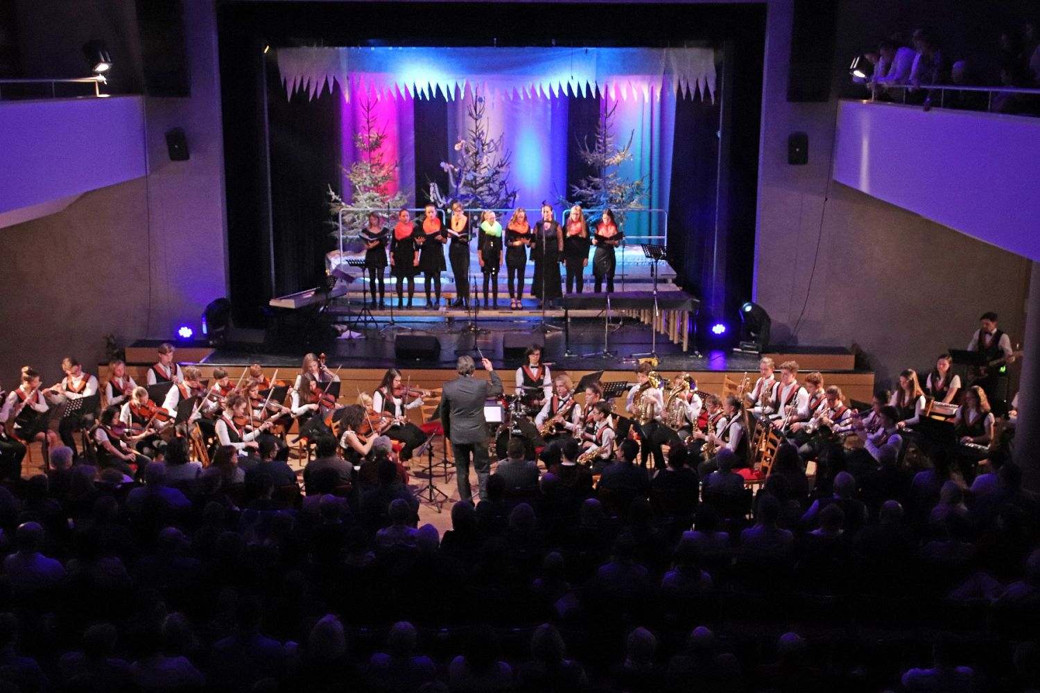 Program otevřela nejmladší Sluníčka vedená Věrou Havlišovou a Barborou Rösslerovou, po nich Slunka a sbor Harmonie, jež řídí Andrea Svobodová a Olga Ubrová. Představily se i Pěvecký sbor gymnázia pod vedením Markéty Rosové Prudíkové a sbory základní umělecké školy Andantino a Andante v čele s Helenou Valovou. Sál rozezvučely desítky hudebních nástrojů z tanečního a smíšeného orchestru ZUŠ pod taktovkou Josefa Vaňhary a Martina Karáska. V jejich podání zněly vánoční písně, koledy, tradicionály z českého i zahraničního repertoáru. Ti všichni přispěli k tomu, že z letošních vánočních koncertů odcházeli lidé spokojeni, naladěni, osvěženi.