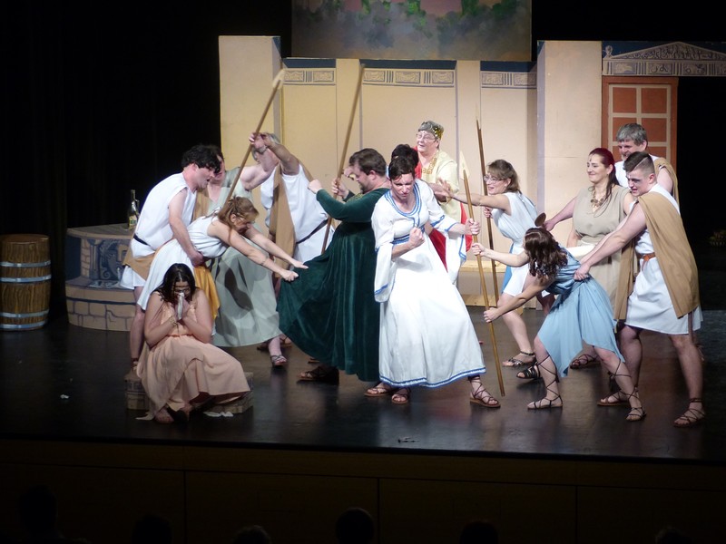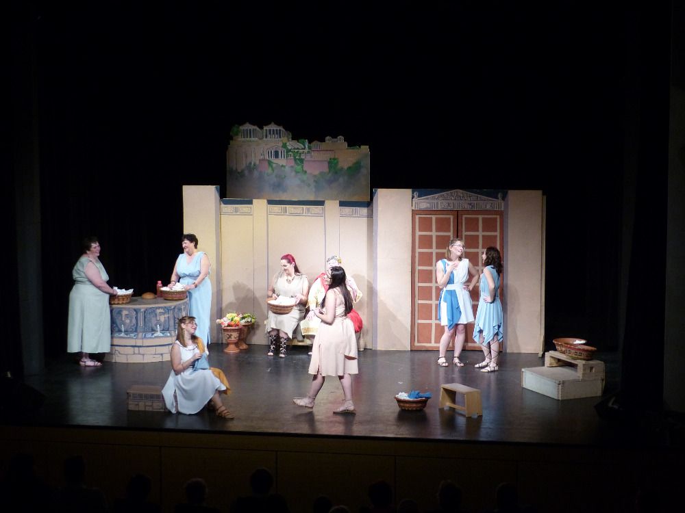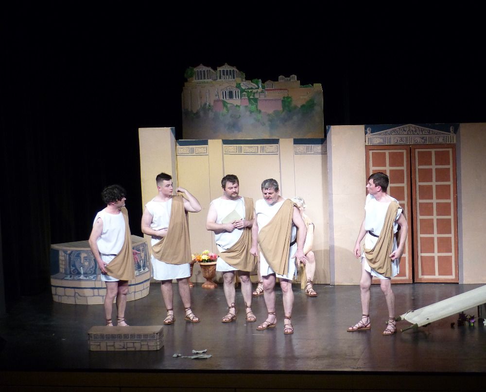 V hlavních rolích se představili Jarmila Ujčíková (radní), Jiří Marek (Thukid), Jiří Kazda (Lukianos), Tomáš Klištinec (Heybalidés), Martin Bárta (Julián), Miroslav Voborný (Damianos), Drahomír Maloušek (Vydridos), Tomáš Rudolecký (Cecilios), Karin Talábová (Phoebé), Karolína Maloušková (Lysistrata), Kristýna Robotková (Myrtyla), Kamila Košová (Andria), Drahomíra Maloušková (Erodiké) a Milada Suchánková (Xaverie).