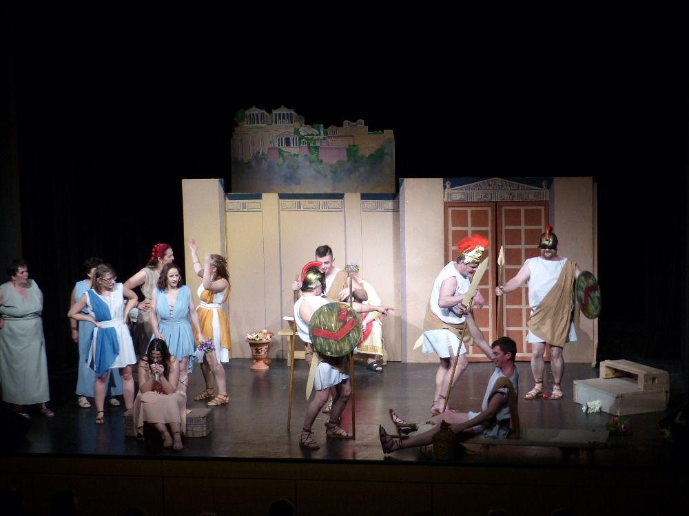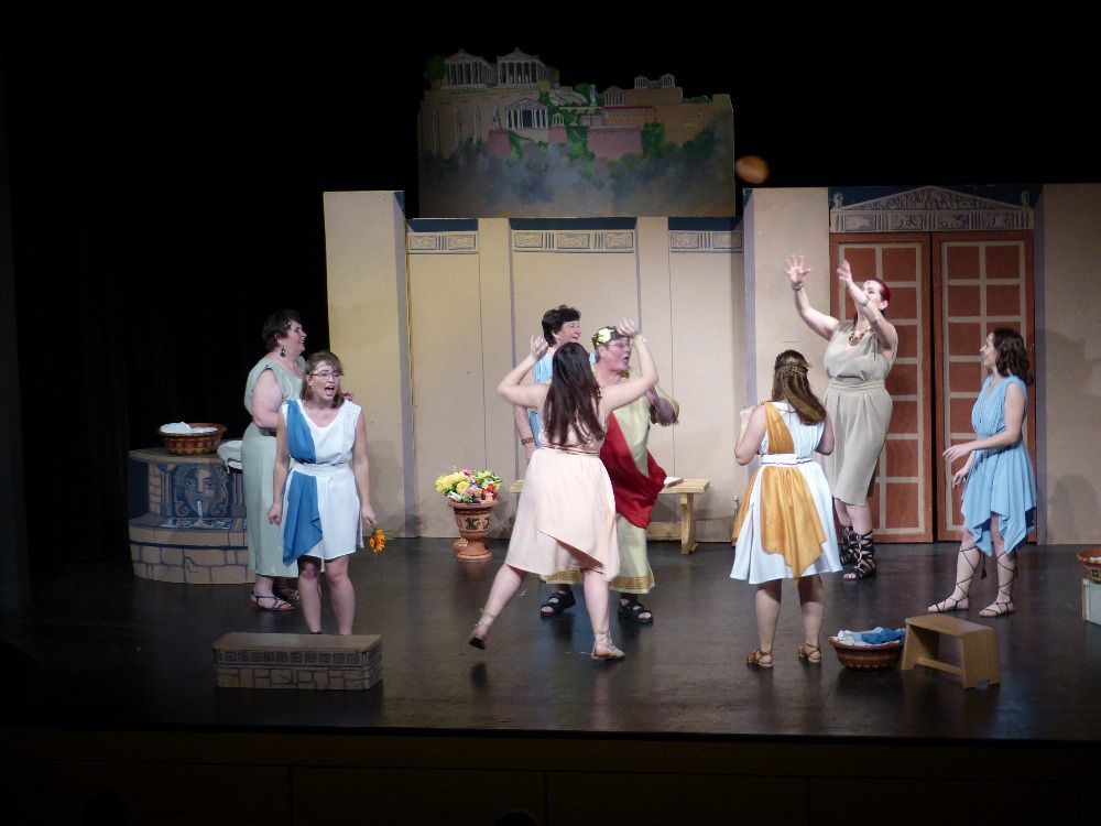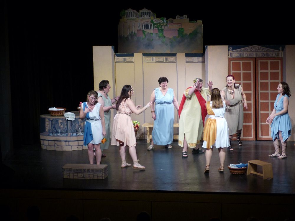 Provizorní řešení, nedopřát drahým polovičkám sex, dokud se bude válčit, se ukázalo jako efektivní, takže závěr představení mohl patřit uzavření míru a veselému slavení.