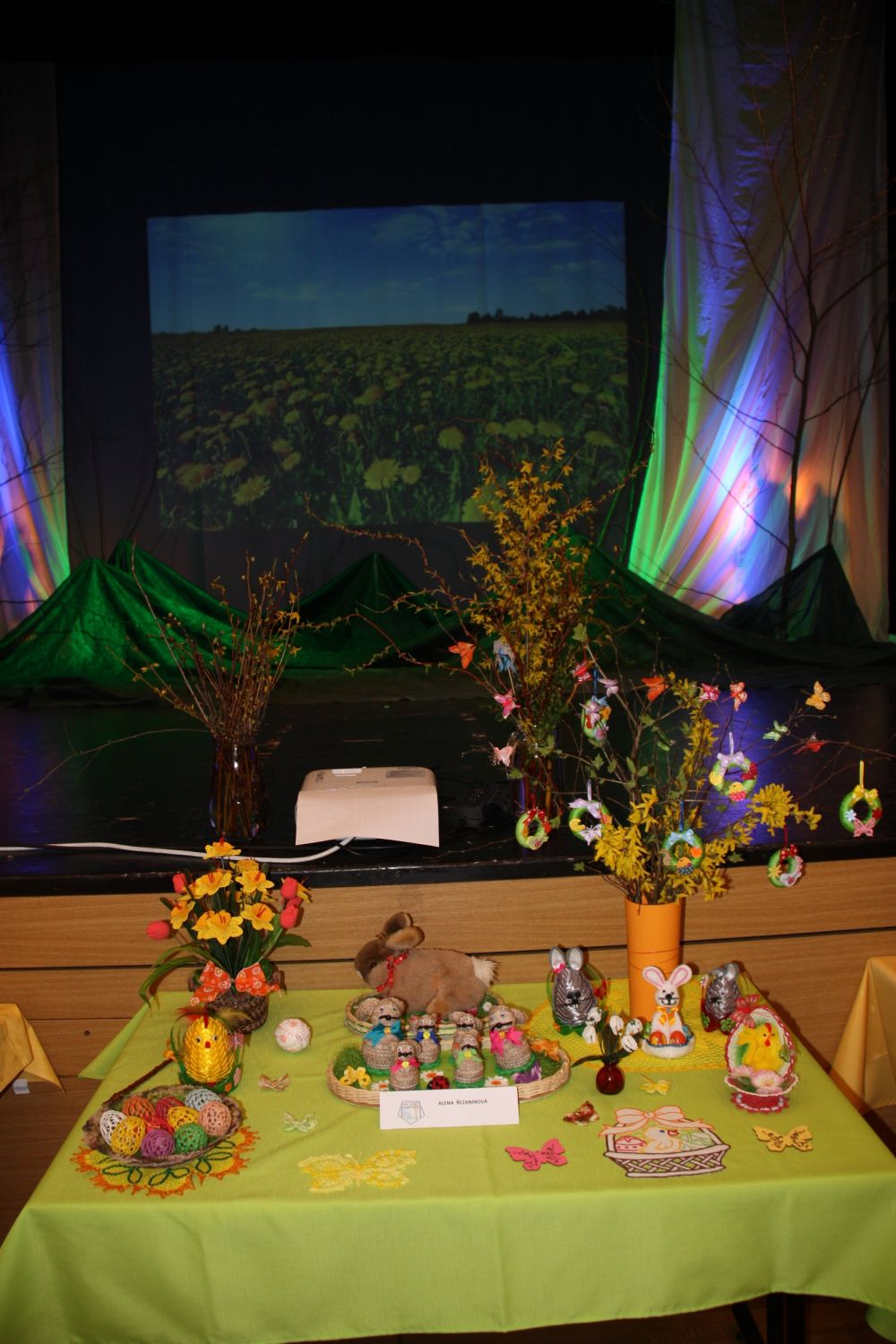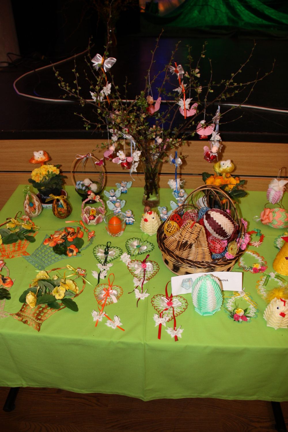 Během tří dnů velký sál zaplnily jarní a velikonoční dekorace. Ke shlédnutí byly nejenom kraslice, pomlázky, zajíčci, ale také výrobky z kovu i dřeva. Ukázkou svých prací přispěli dospělí i děti z místních organizací, škol i spousta soukromých vystavovatelů.