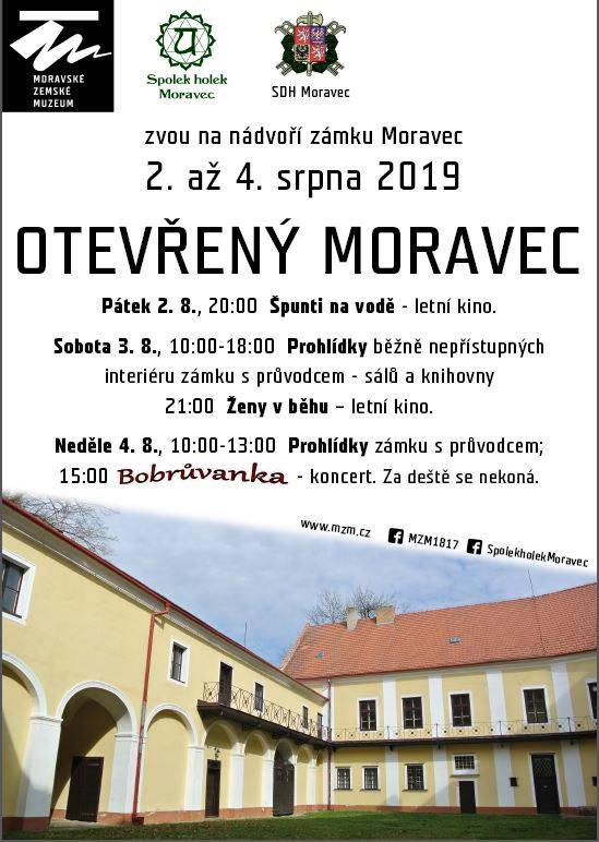 Památka slouží jako depozitář Moravského zemského muzea (MZM). V sobotu 3. srpna celý den a v neděli dopoledne bude ale možné v rámci akce Otevřený Moravec s průvodcem nahlédnout do několika historických sálů a také do knihovny rodiny hrabat Gudenus. Novinkou pro návštěvníky a sběratele bude i pamětní razítko zámku. Již na páteční večer připravil Spolek holek Moravec na historickém nádvoří i letní kino s filmem Špunti na vodě, v sobotu ve 21:00 filmoví fanoušci zhlédnou na nádvoří snímek Ženy v běhu. Celý víkend na „otevřeném" moraveckém zámku završí v neděli v 15:00 koncert Bobrůvanky.