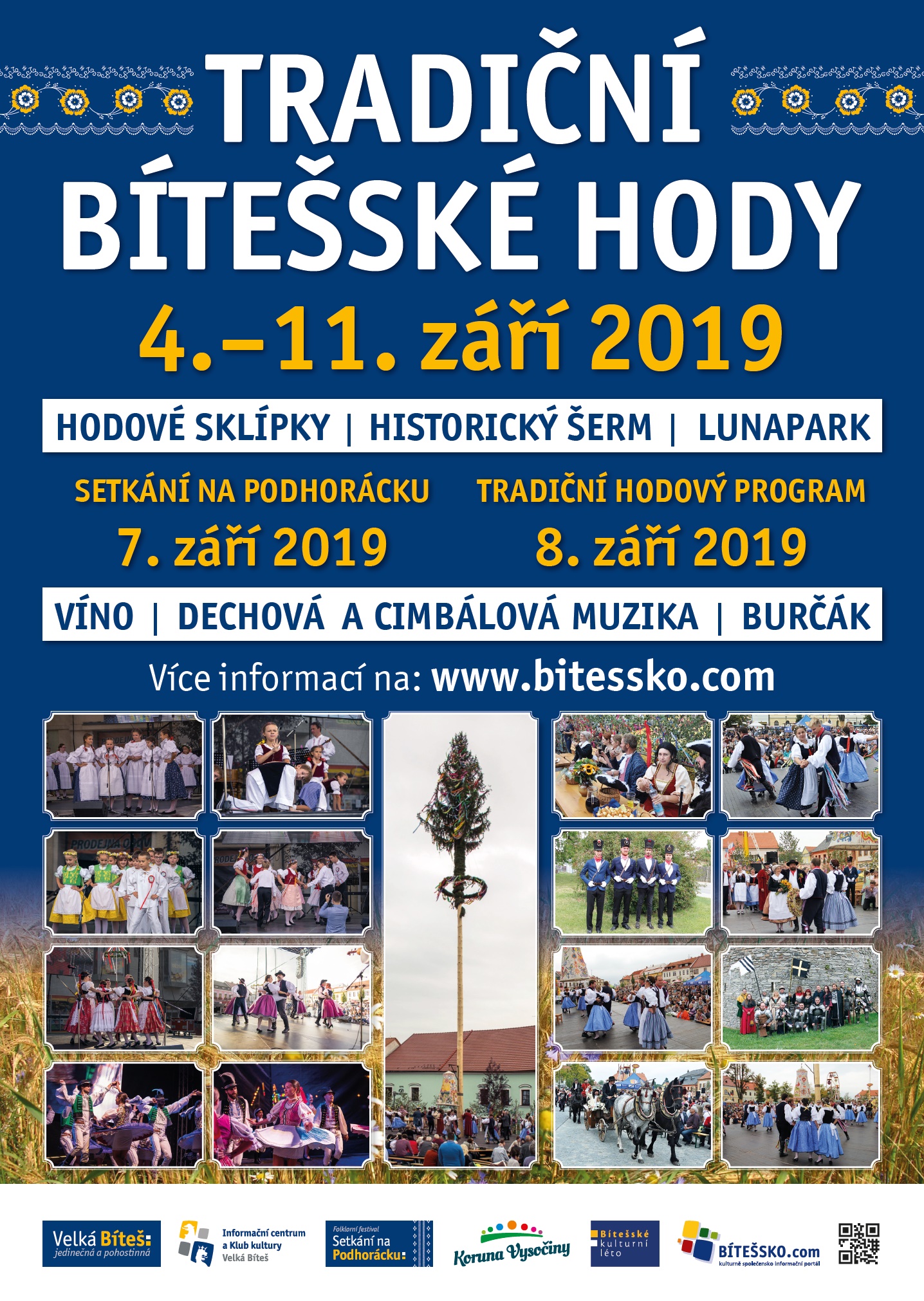 Pro Velkou Bíteš se blíží nejvýznamnější akce v kalendářním roku a to jsou Tradiční bítešské hody. Letos se uskuteční v termínu od 4. září do 11. září 2019.