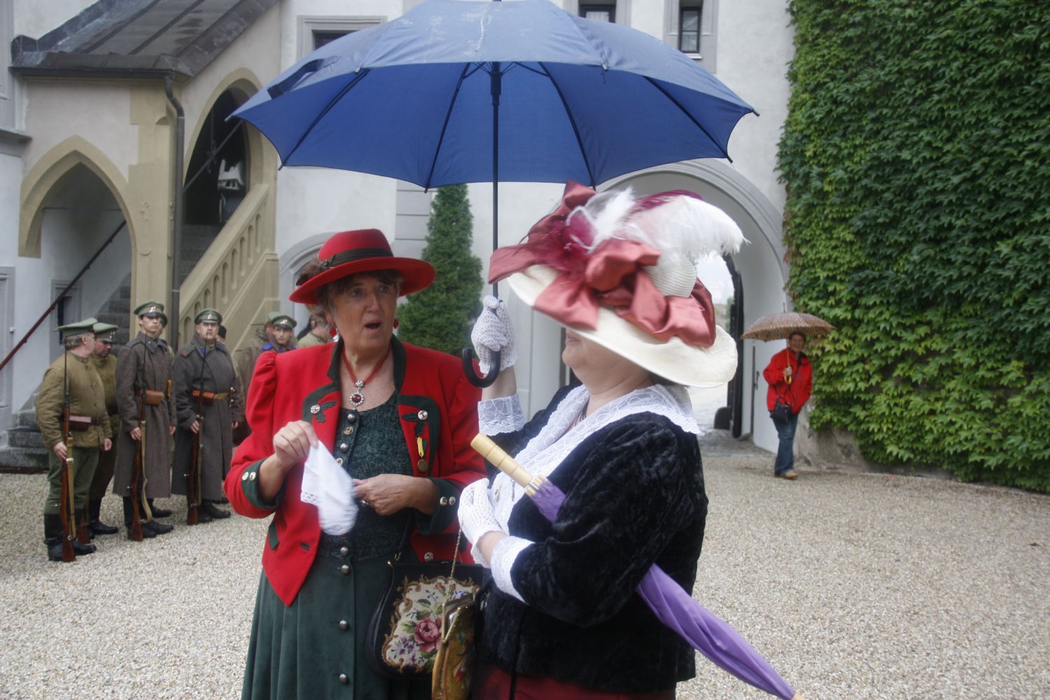 Historické slavnosti u příležitosti 110. výročí těchto manévrů nabídly návštěvníkům zámku bohatý program, který v sobotu ovlivnilo deštivé počasí.