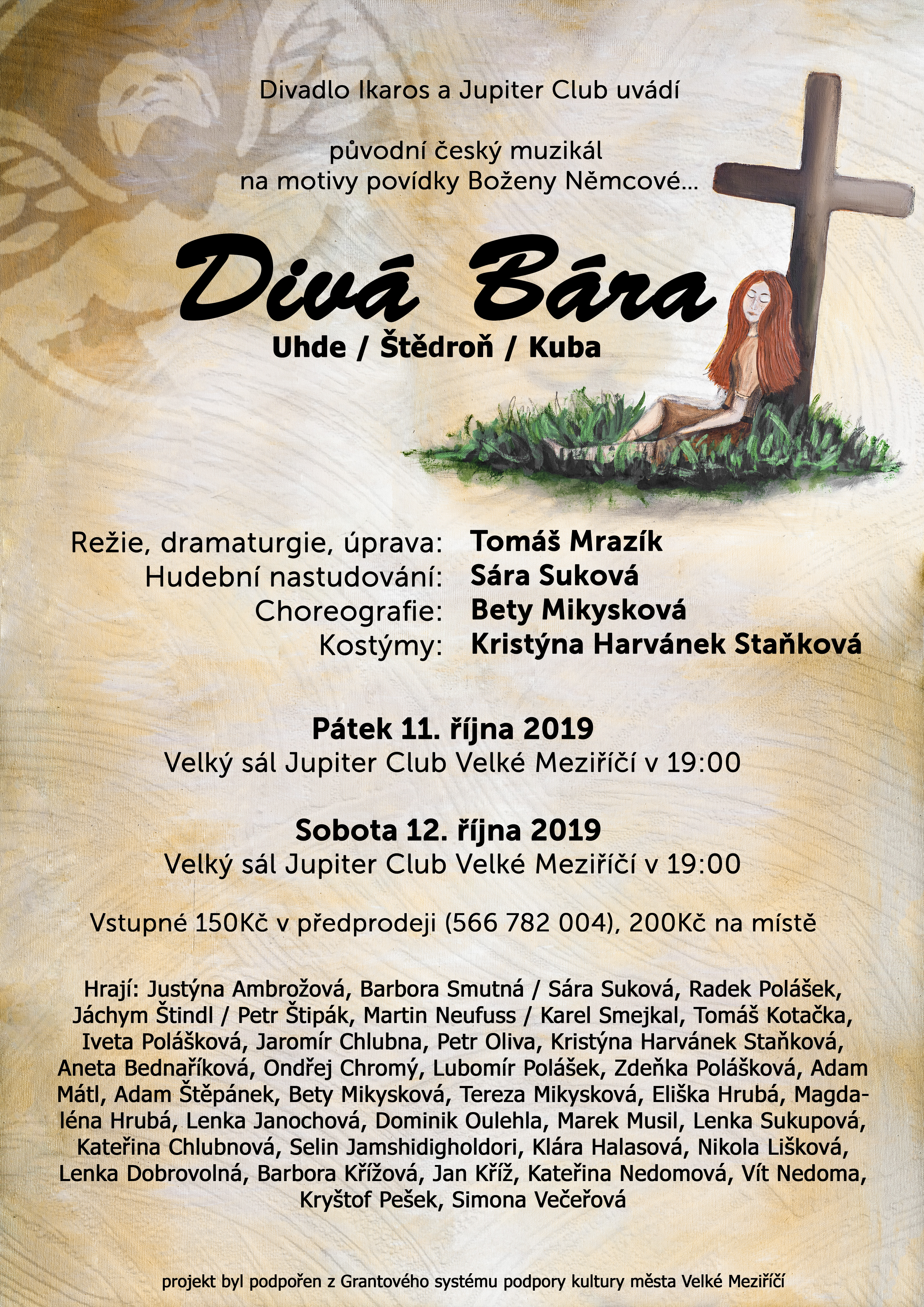 V květnu všechna představení beznadějně vyprodali, na říjen chystají poslední reprízy. Divadelníci z Ikara si pro velkomeziříčské diváky připravili na pátek 11. října a sobotu 12. října opakování muzikálu Divá Bára. Ta uvedou vždy od 19 hodin ve velkém sále Jupiter clubu.