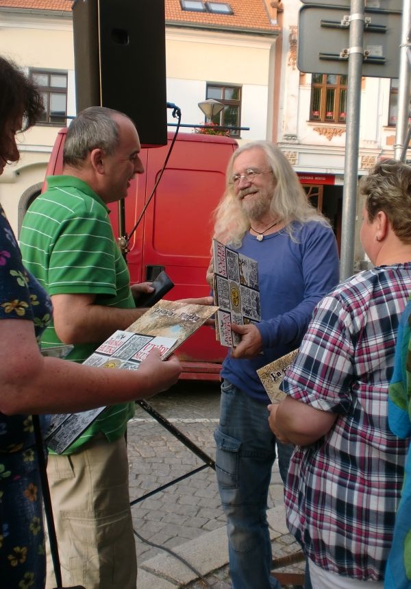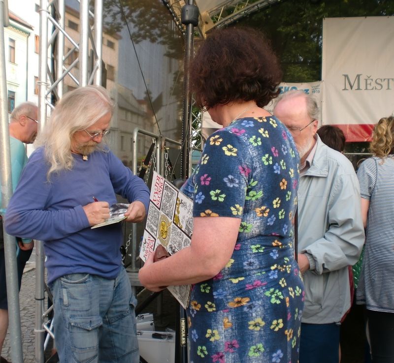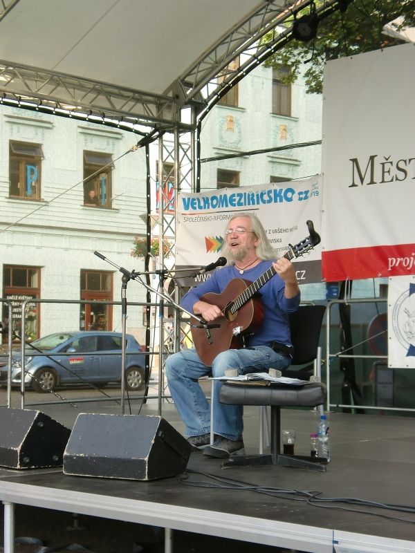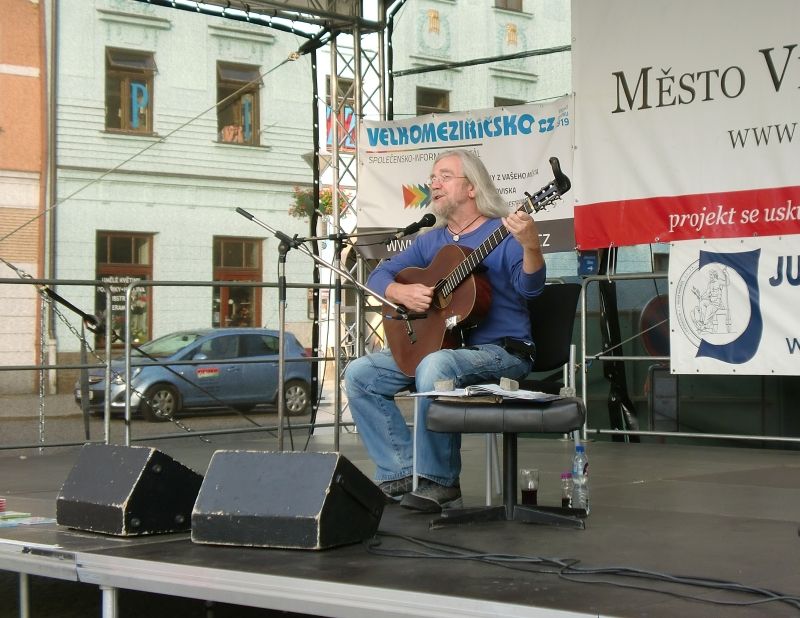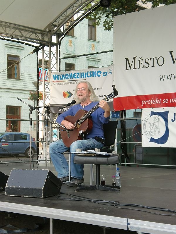 Jaroslav Hutka vystoupil v neděli 12. července večer na meziříčském náměstí. Zazněly písně jak dětské a milostné, tak oslavující osobnosti českých dějin.