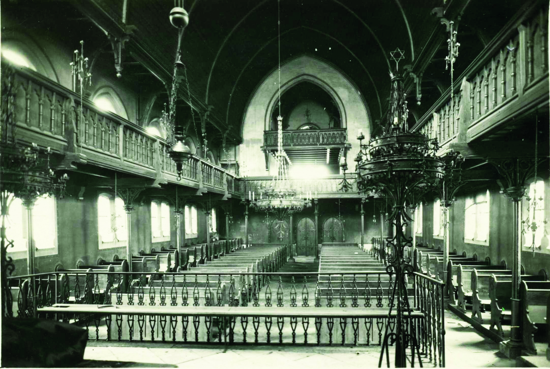 Budova byla postavena z neomítnutých červených a v menším množství černých cihel. Okna zdobily barevné vitráže se symbolem Davidovy hvězdy a ve dvou omítnutých pruzích nad vchodem byly umístěny hebrejské citáty z Bible. Vnitřek synagogy odpovídal již modernějšímu pojetí, kdy řečniště bylo přesunuto blíže ke svatostánku a lavice byly umístěny rovnoběžně podobně jako v křesťanských kostelích. Ze tří stran obklopovala chrám ženská galerie nesená litinovými sloupy. Zajímavý byl také zdobený strop ve tvaru nepravé klenby.