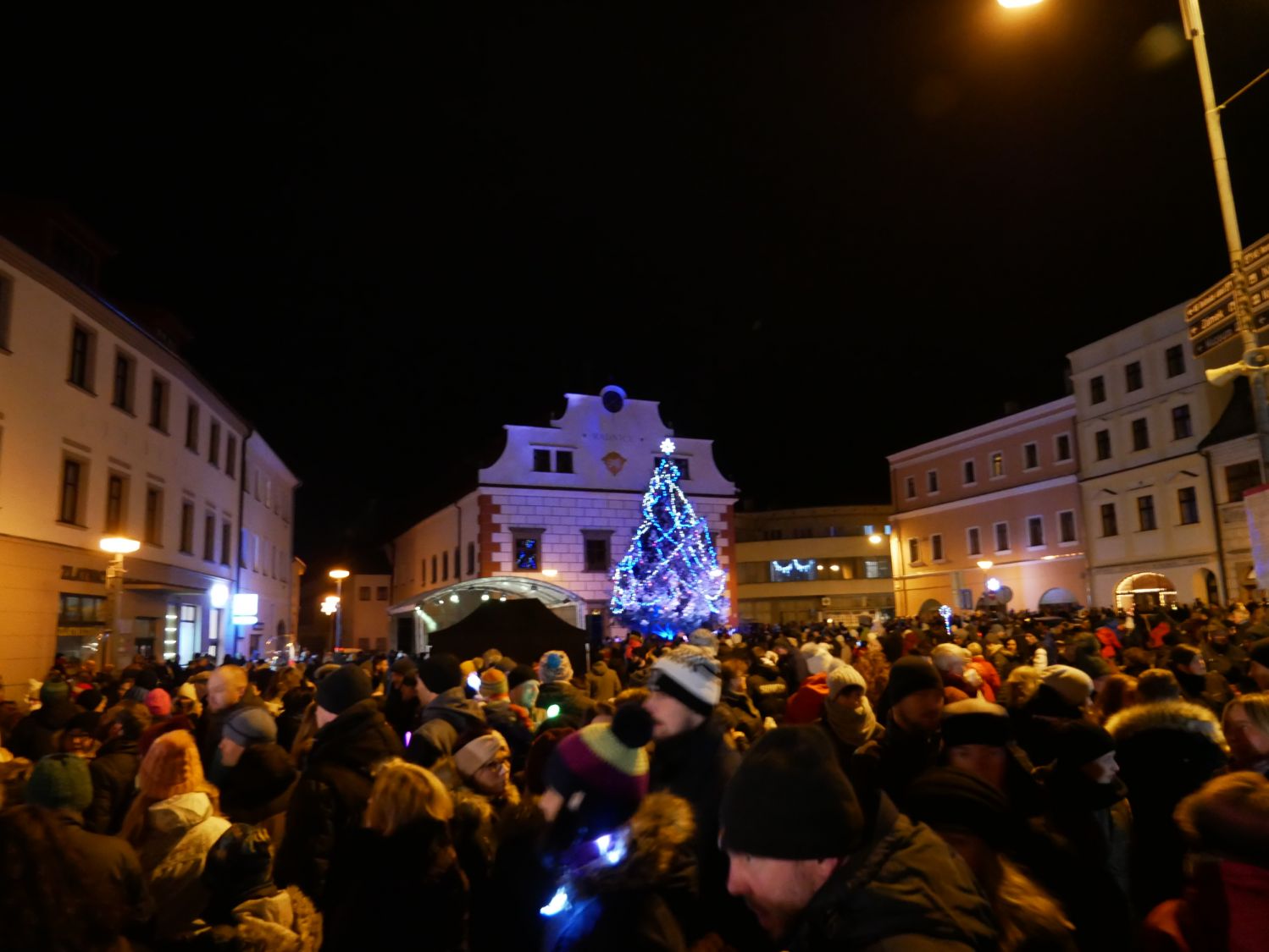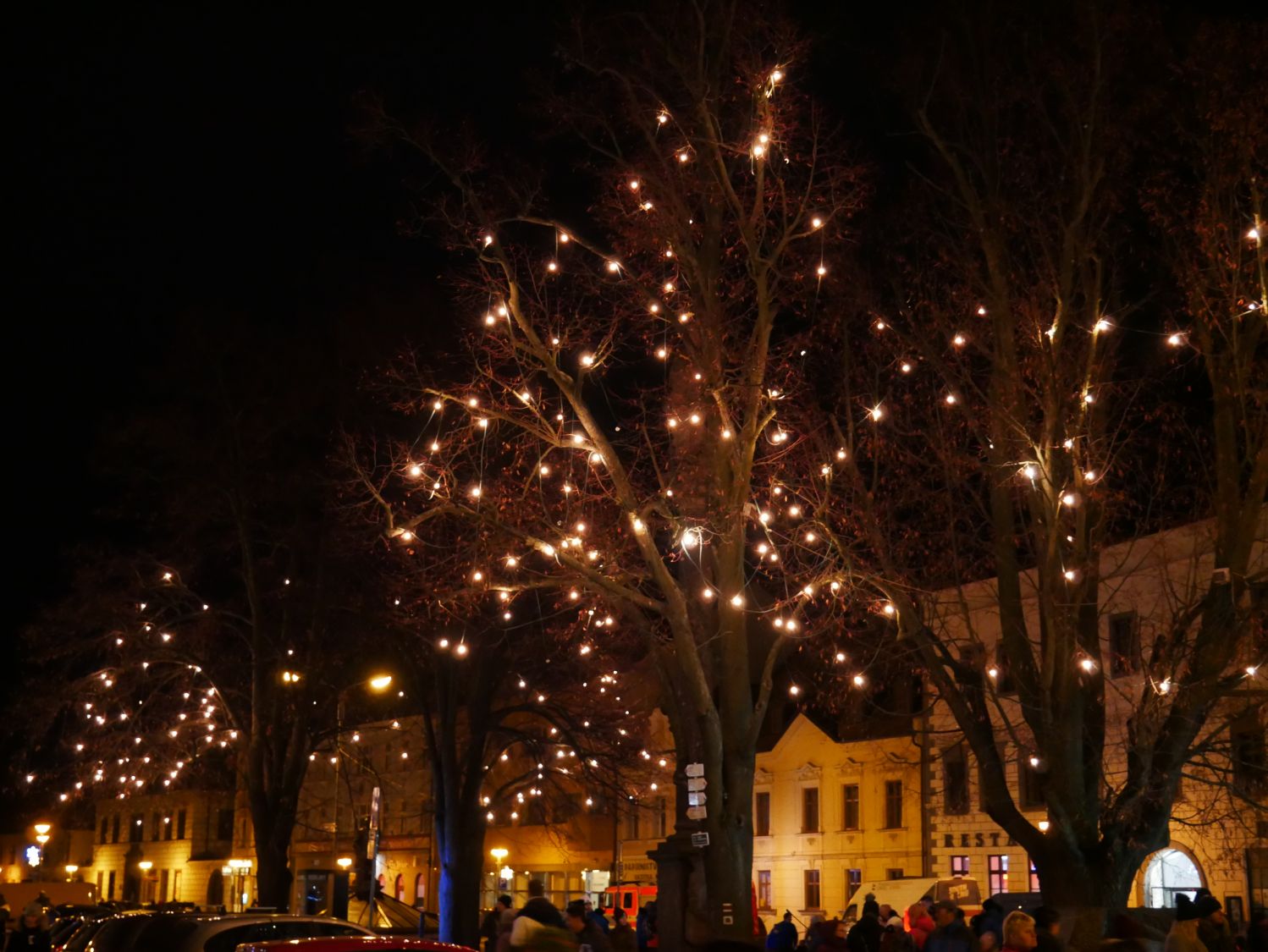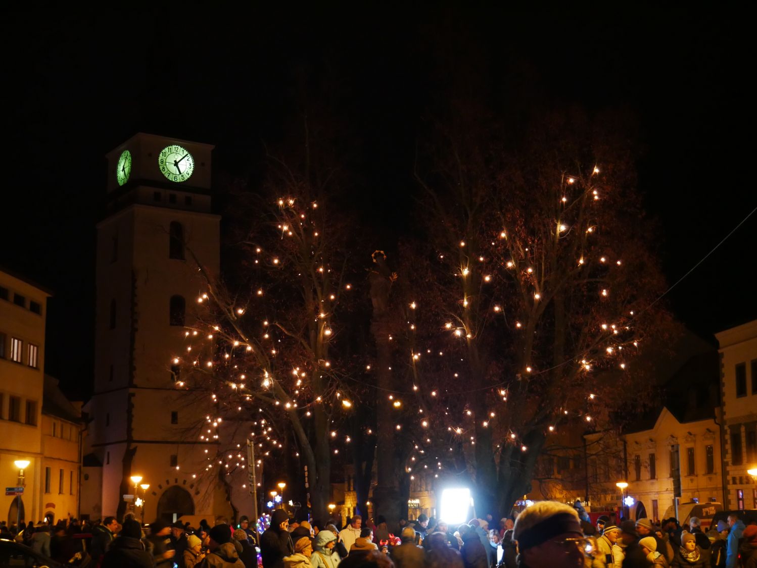 To letošní proběhlo první adventní neděli 1. prosince, kdy se rozzářil nejen vánoční strom před radnicí, ale i nová městská světýlka na sloupech veřejného osvětlení, po odpočítání jednatele Jupiter clubu Milana Dufka. „Chtěl bych vám popřát krásné adventní dny a Vánoce prožité v kruhu přátel," přivítal přítomné starosta Josef Komínek a připojil i přání zdraví, lásky a štěstí do nového roku. „Vánoce jsou časem, kdy lidé mají být blíž sobě. Je potřeba, tyto dny nepromarnit. Nezapomeňte, vyřizovat svoje účty, které máte a také odpouštět," připomněl děkan Pavel Šenkýř.