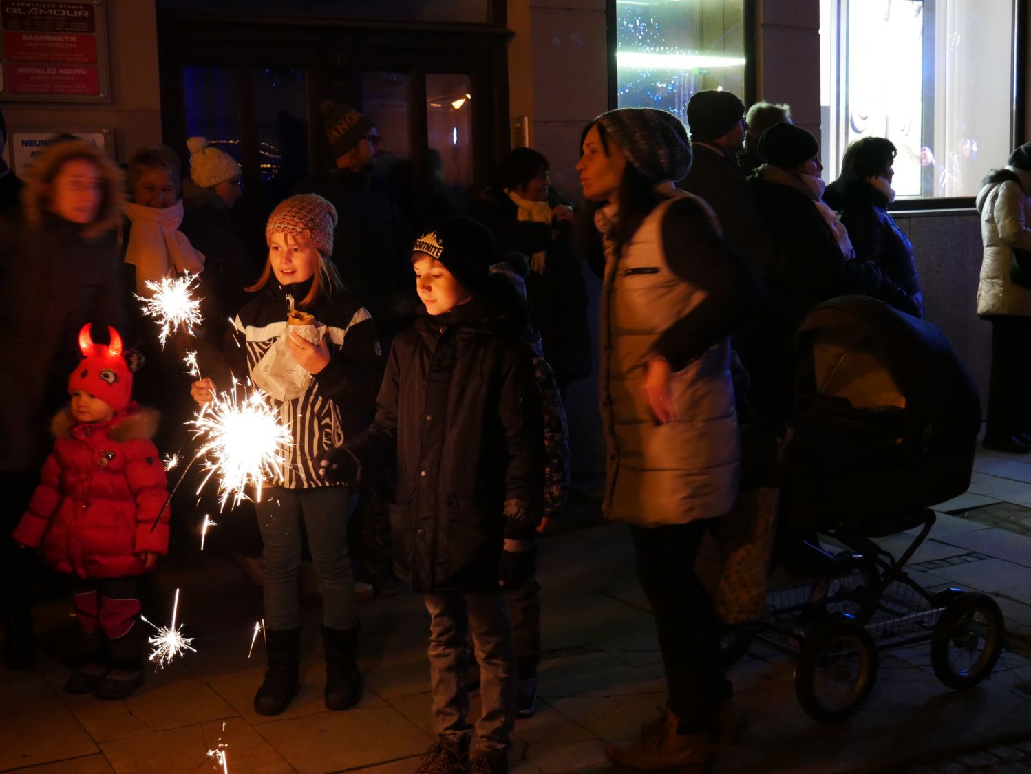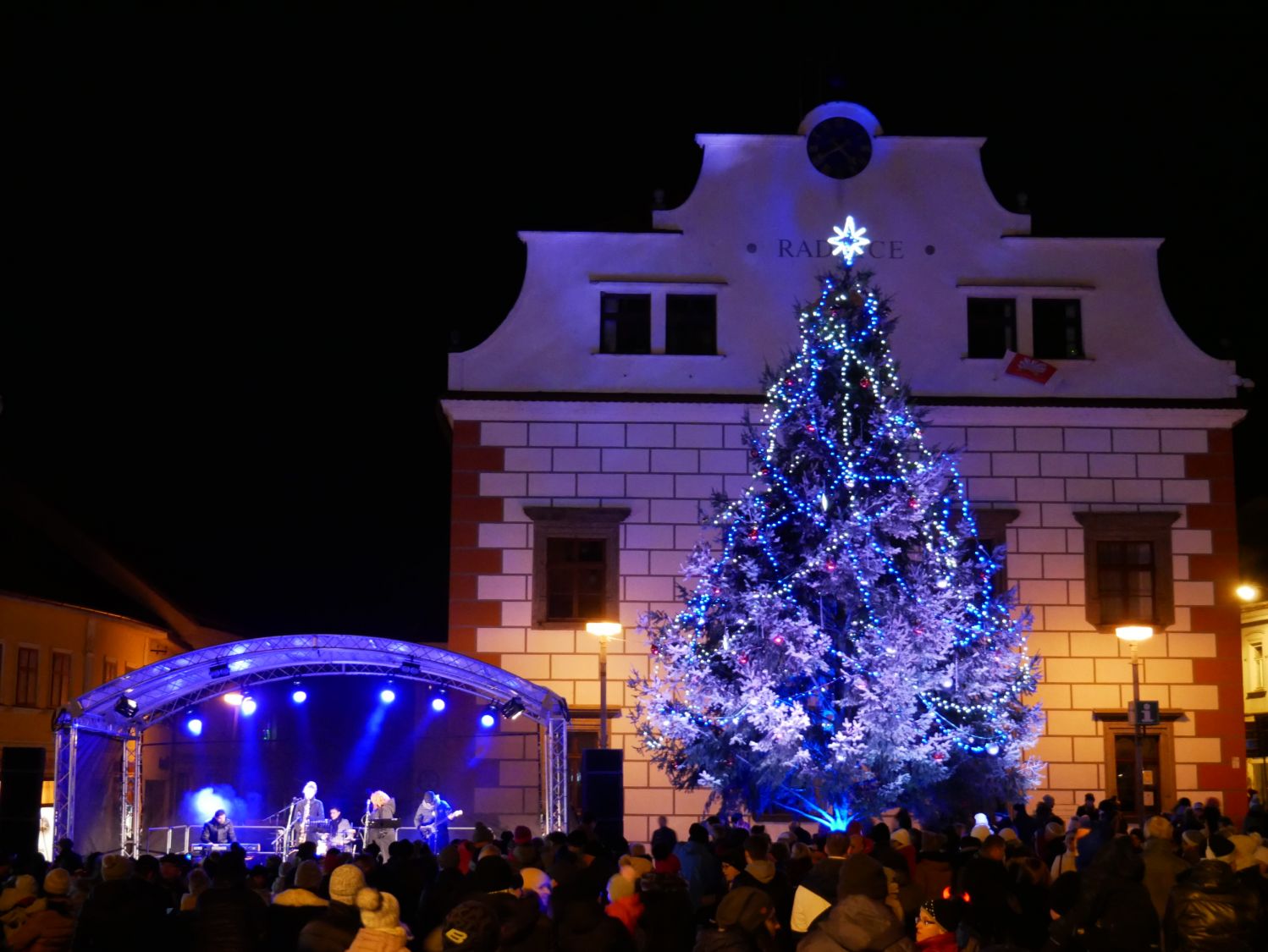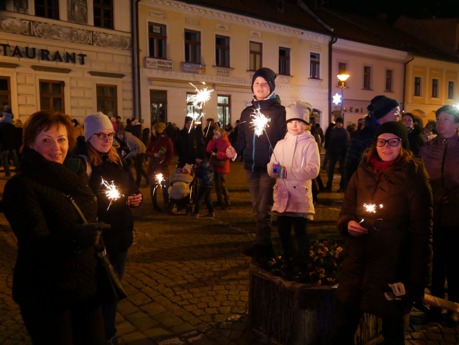 To letošní proběhlo první adventní neděli 1. prosince, kdy se rozzářil nejen vánoční strom před radnicí, ale i nová městská světýlka na sloupech veřejného osvětlení, po odpočítání jednatele Jupiter clubu Milana Dufka. „Chtěl bych vám popřát krásné adventní dny a Vánoce prožité v kruhu přátel," přivítal přítomné starosta Josef Komínek a připojil i přání zdraví, lásky a štěstí do nového roku. „Vánoce jsou časem, kdy lidé mají být blíž sobě. Je potřeba, tyto dny nepromarnit. Nezapomeňte, vyřizovat svoje účty, které máte a také odpouštět," připomněl děkan Pavel Šenkýř.