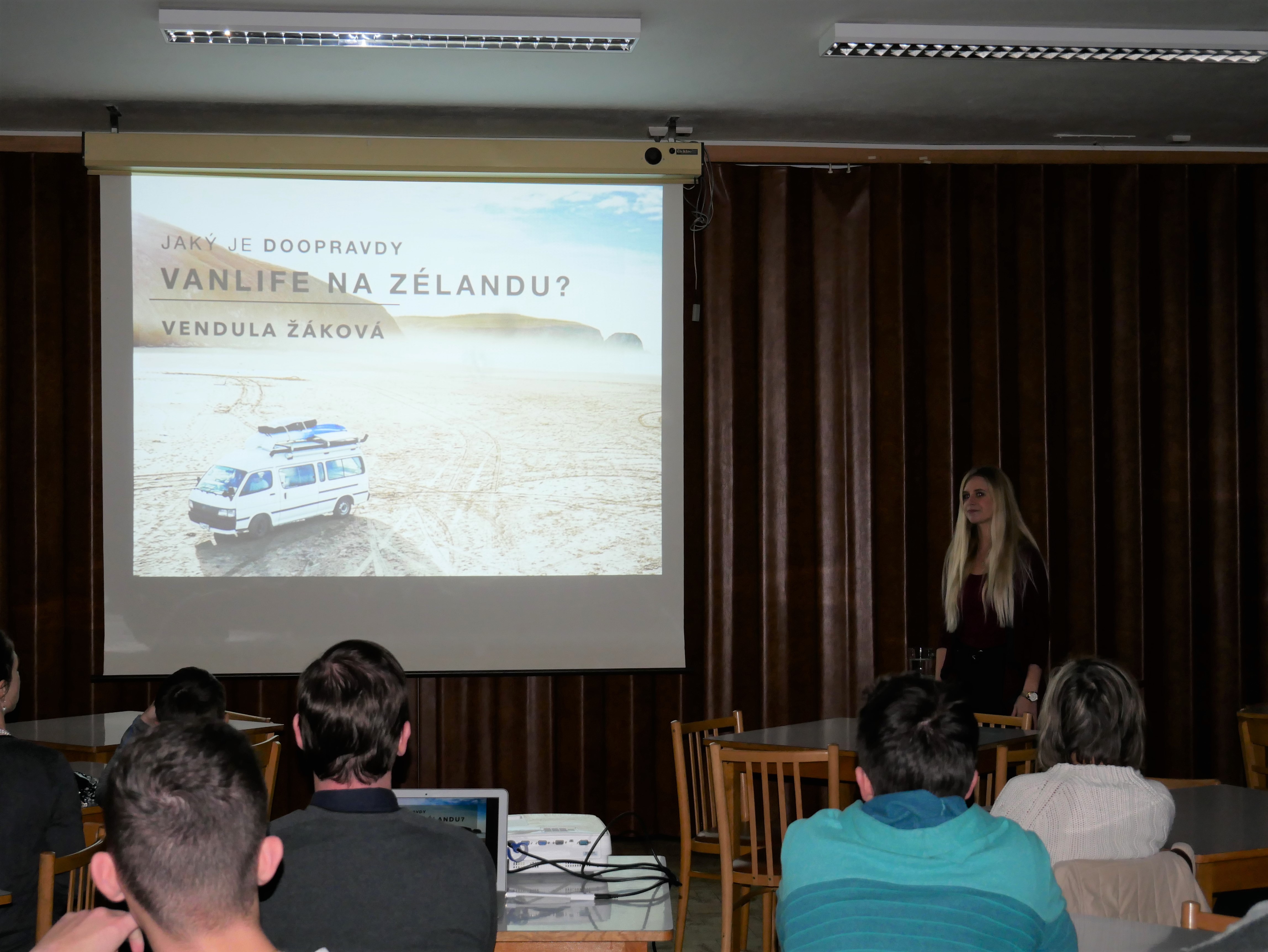 Ve velkomeziříčské „hasičce" se posluchači ve čtvrtek 12. prosince 2019 dozvěděli detaily o životě v dodávce. Přednášející Vendula Žáková žije ve vlastnoručně přestavěné dodávce, ze které je nyní obytný prostor i dopravní prostředek. Vendula, která se dá označit za digitální nomádku (osoba, která pracuje na dálku přes počítač, a tak může pracovat odkudkoli, pozn. red.) procestovala už 36 zemí a momentálně plánuje další expedici se svým australským přítelem Marcelem.