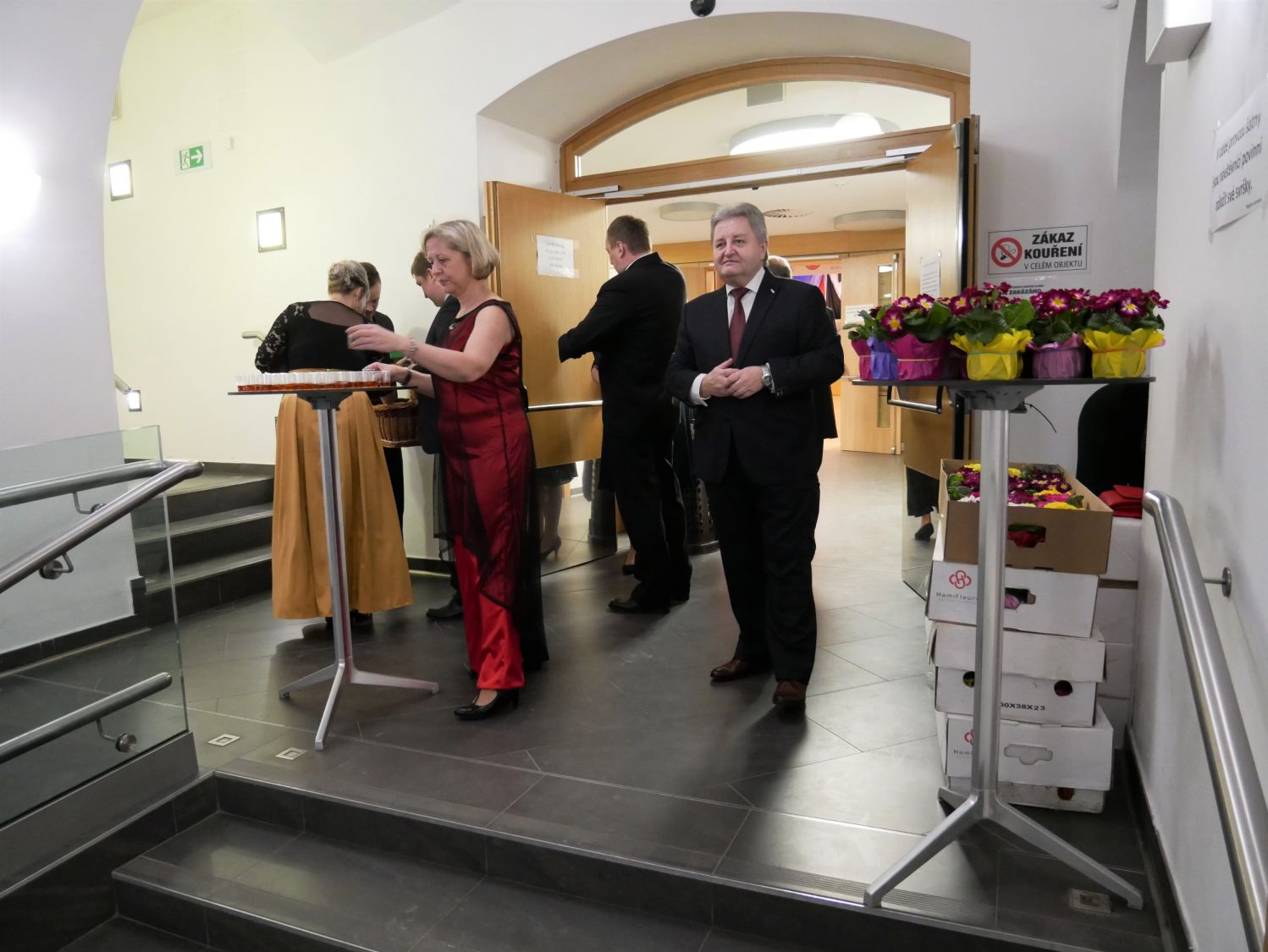 Městský ples zahájil novou plesovou sezonu ve Velkém Meziříčí v sobotu 18. ledna. U vstupu přivítali příchozí starosta Josef Komínek, který vítal dámy kytičkou, a místostarostka Jiřina Jurdová. Ta potěšila pány přípitkem.