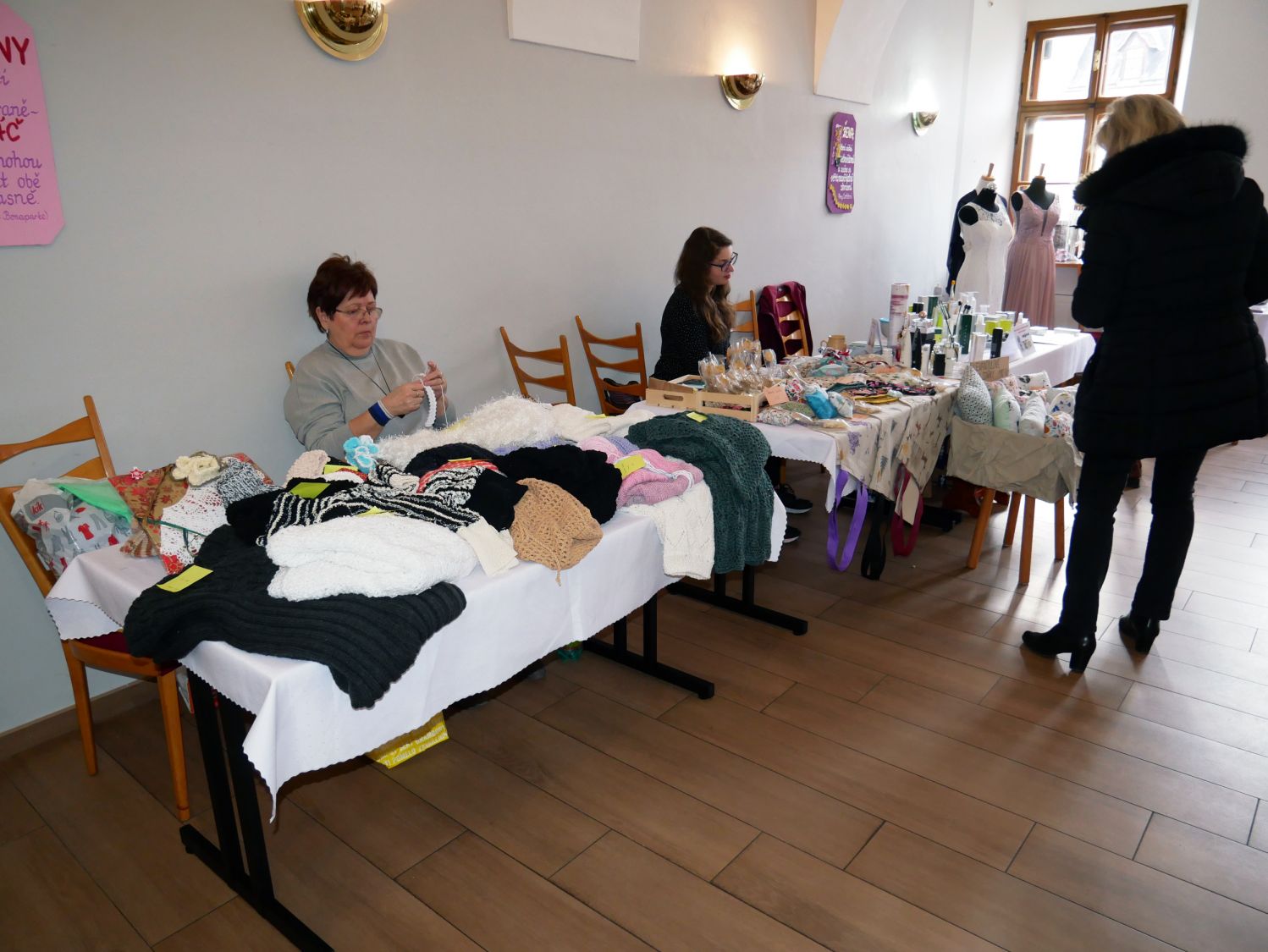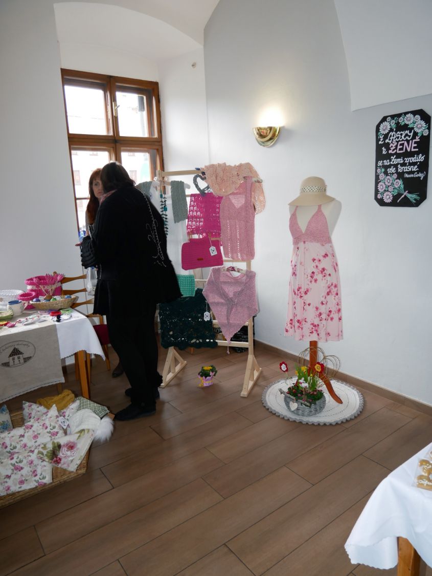 „K pokoukání i koupení byly šperky, drahé kameny, malovaná trička, ručně vyráběná mýdla, chutné domácí marmelády, krásné zdobené perníčky, šité bytové doplňky, šitá i háčkovaná dámská móda, přírodní kosmetika a malované hrnečky a obrázky," uvedla členka komise Zdravého města Libuše Kotoučková. Mimo prodejní výstavu se dámy mohly nechat nalíčit, některé využily i poradenství v péči o pleť, jiné sbíraly inspiraci.