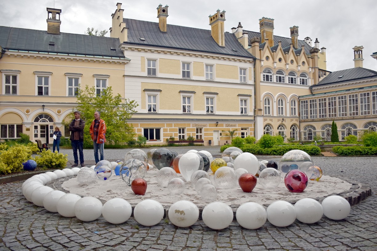 Plastika Pocta sklářům je společným dílem skláren a výtvarníků nejen z Vysočiny. Tvoří ji více než stovka skleněných koulí, z nichž část je autorských děl od výtvarníků Exnara, Hory, Jabůrka, Janáka, Pačinka a dalších. Koncept plastiky vymyslel Jan Exnar. Vychází z toho, že každé skleněné dílo se rodí z vyfouknuté baňky. Každá jednotlivá koule plastiky tak reprezentuje jednu sklárnu, jednoho výtvarníka. Některé jsou barevné, některé broušené, některé jinak zdobené. Každý tu svoji pojal po svém. „Plastika bude pokřtěna právě v sobotu 13. června během Zámeckého sklářského dne. Instalace o průměru pěti metrů bude trvale k vidění na zámeckém nádvoří," říká majitelka světelského zámku Helena Degerme.