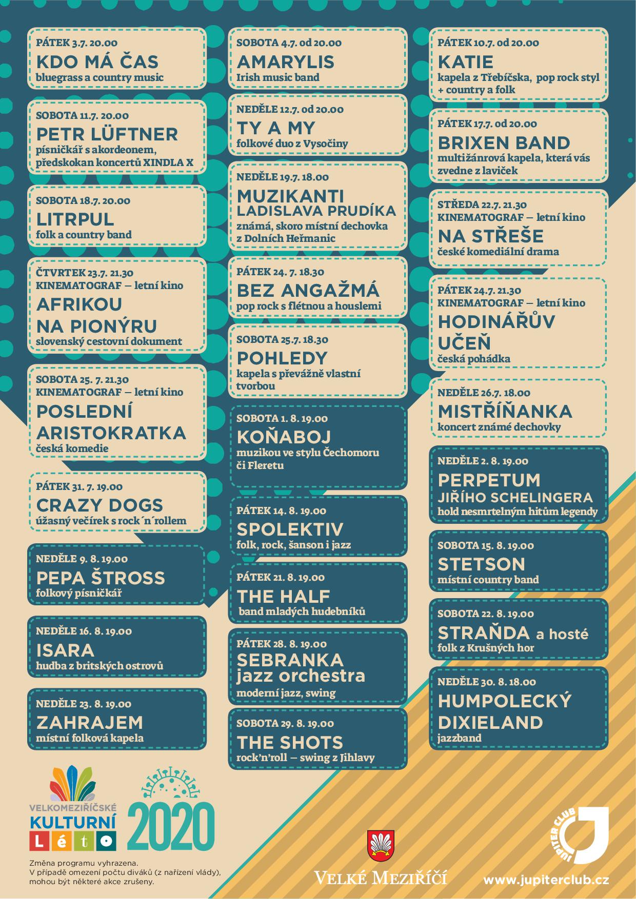 V pořadí již 8. ročník Velkomeziříčského kulturního léta, které pravidelně organizuje Jupiter club, startuje první prázdninový víkend.