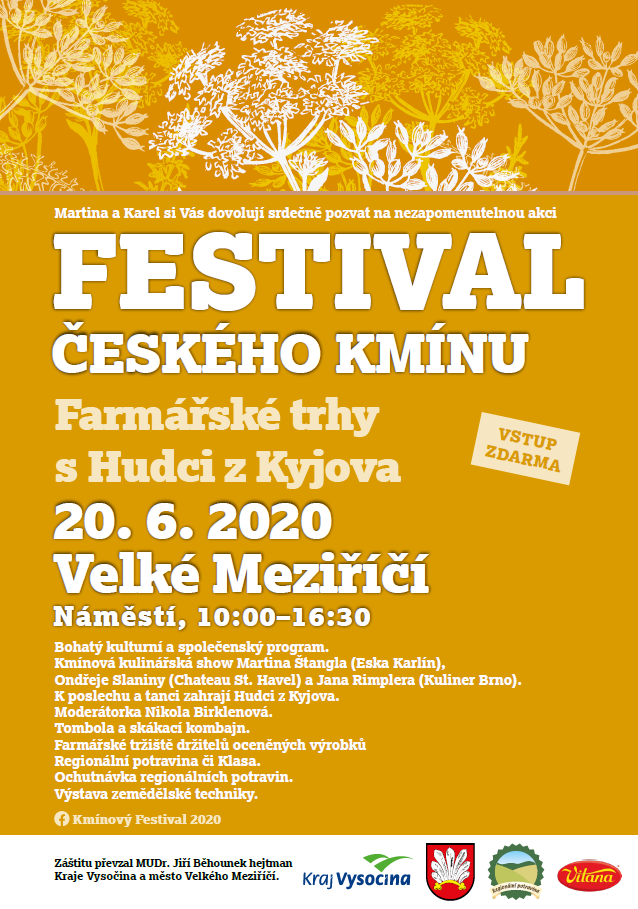Přes 700 lidí si nenechalo ujít historicky první ročník festivalu věnovaného kmínu, který v loňském roce vznikl díky Karlu Jonákovi a Martině Homolové, majitelům Olejového mlýnu Petráveč. Akce s oficiálním názvem Festival českého kmínu je jedinou svého druhu v Česku a přibližuje návštěvníkům typické koření české kuchyně s nezaměnitelnou vůní a chutí, tedy kmín. Na velkomeziříčském náměstí nebude chybět festival ani letos. Cíl pořadatelů je jasný, chtějí uspořádat příjemnou akci s dobrým jídlem a rodinnou atmosférou.