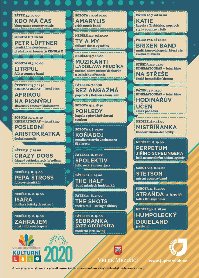 V pořadí 8. ročník Velkomeziříčského kulturního léta startuje v pátek 3. července. Jako první se představí bluegrass a country kapela.