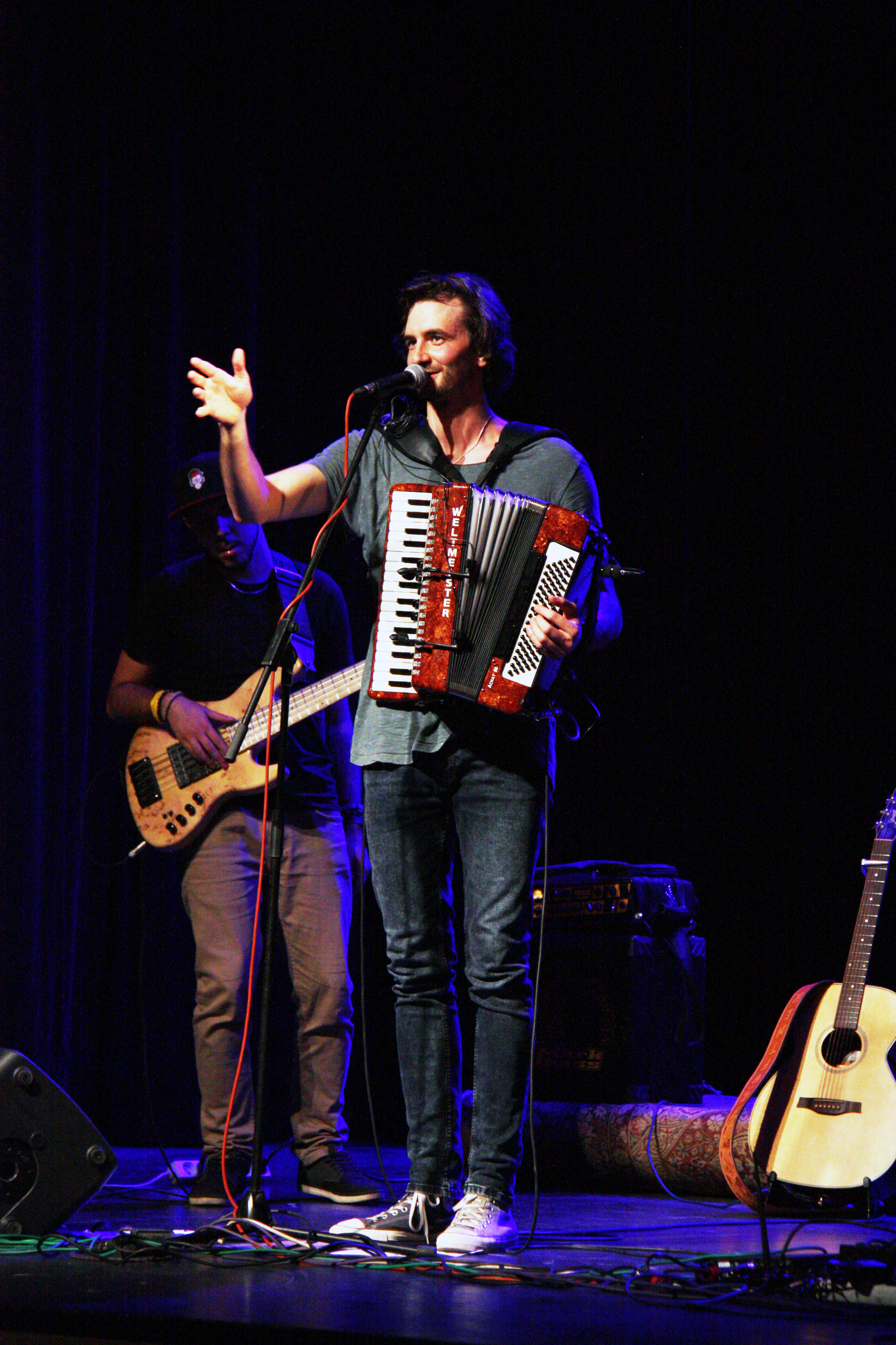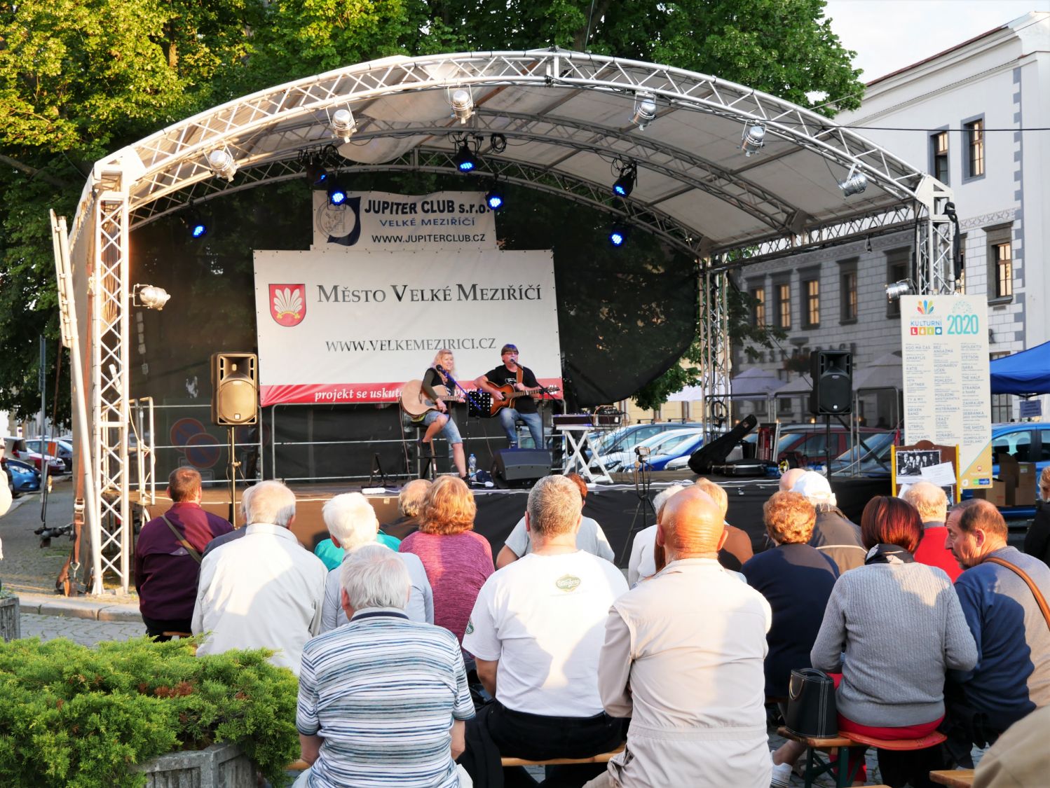 Velkomeziříčské kulturní léto se poprvé v letošním roce odehrálo ve velkém sále Jupiter clubu, a to v sobotu 11. července. Deštivé počasí neodradilo zpěváka Petra Lüftnera, který přijel potěšit posluchače zpěvem, hrou na kytaru i na nevšední akordeon. Hudebníka z Ústí nad Labem vyvracejícího předsudky o harmonice, doprovodil na basu Marek Mrvík a na kytaru Jiří Staněk.
