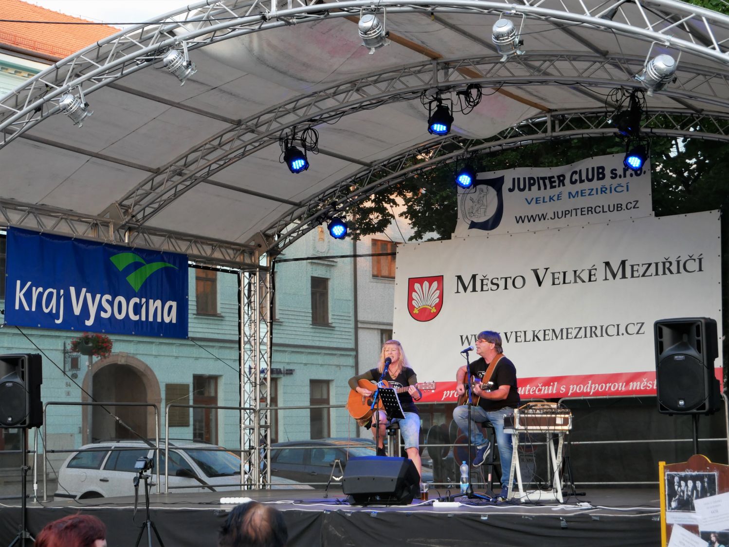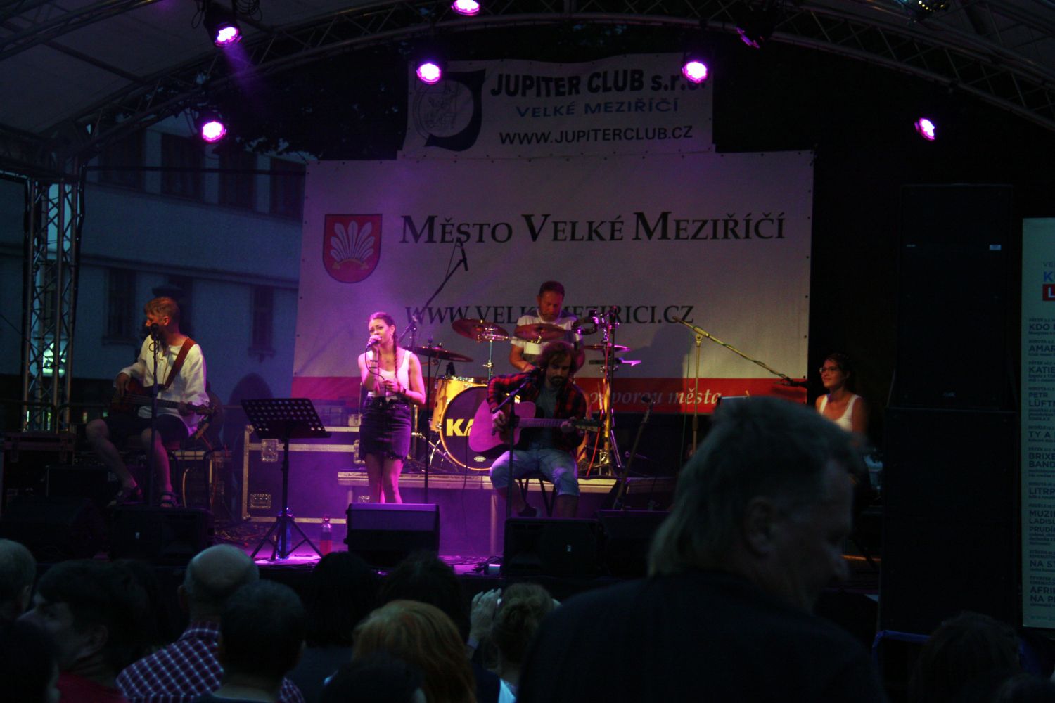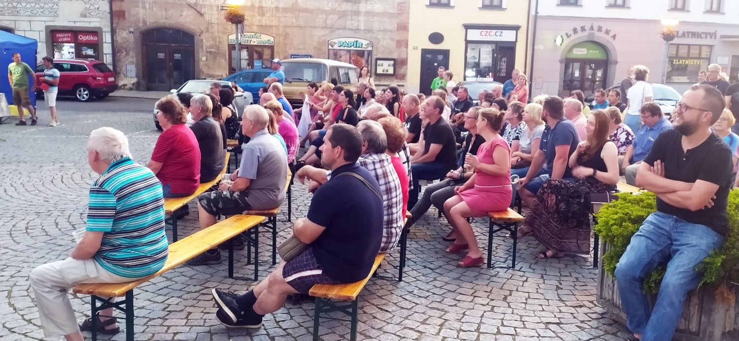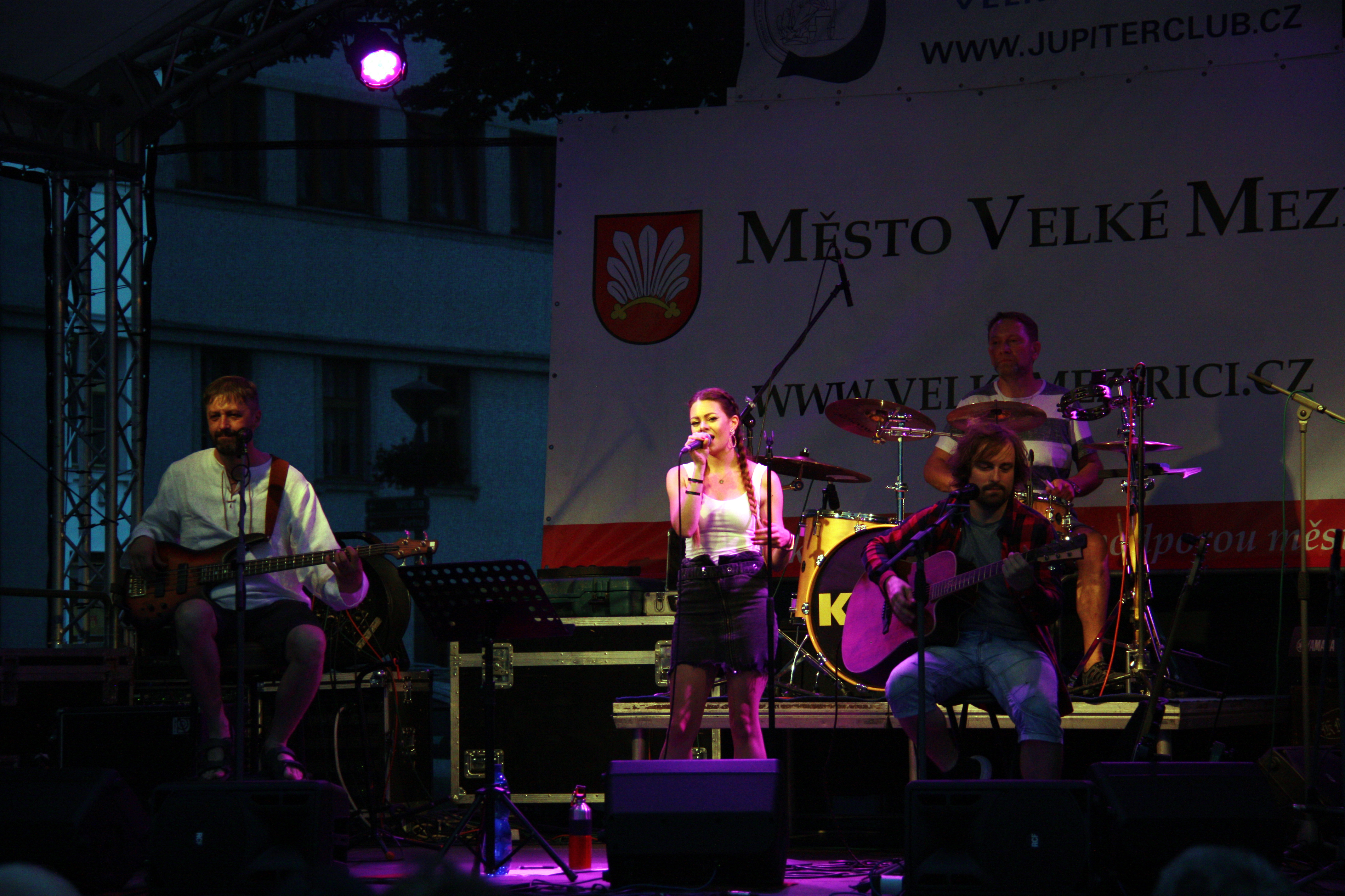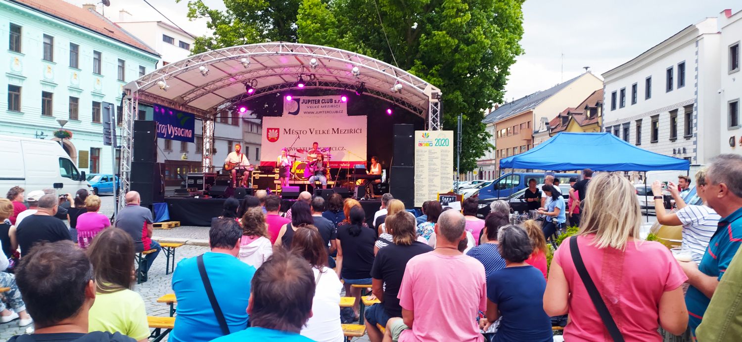 V závěru druhého červencového týdne se na velkomeziříčském náměstí představila hudební kapela Ty a My. Tato skupina je v našem městě již podruhé a i přes chladné počasí si ji přišlo poslechnout několik desítek posluchačů.
