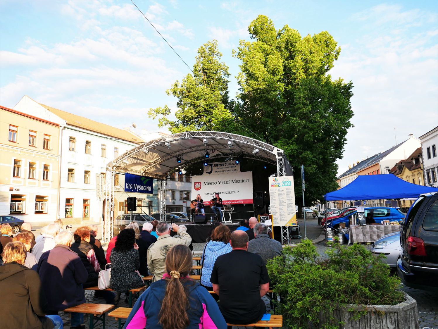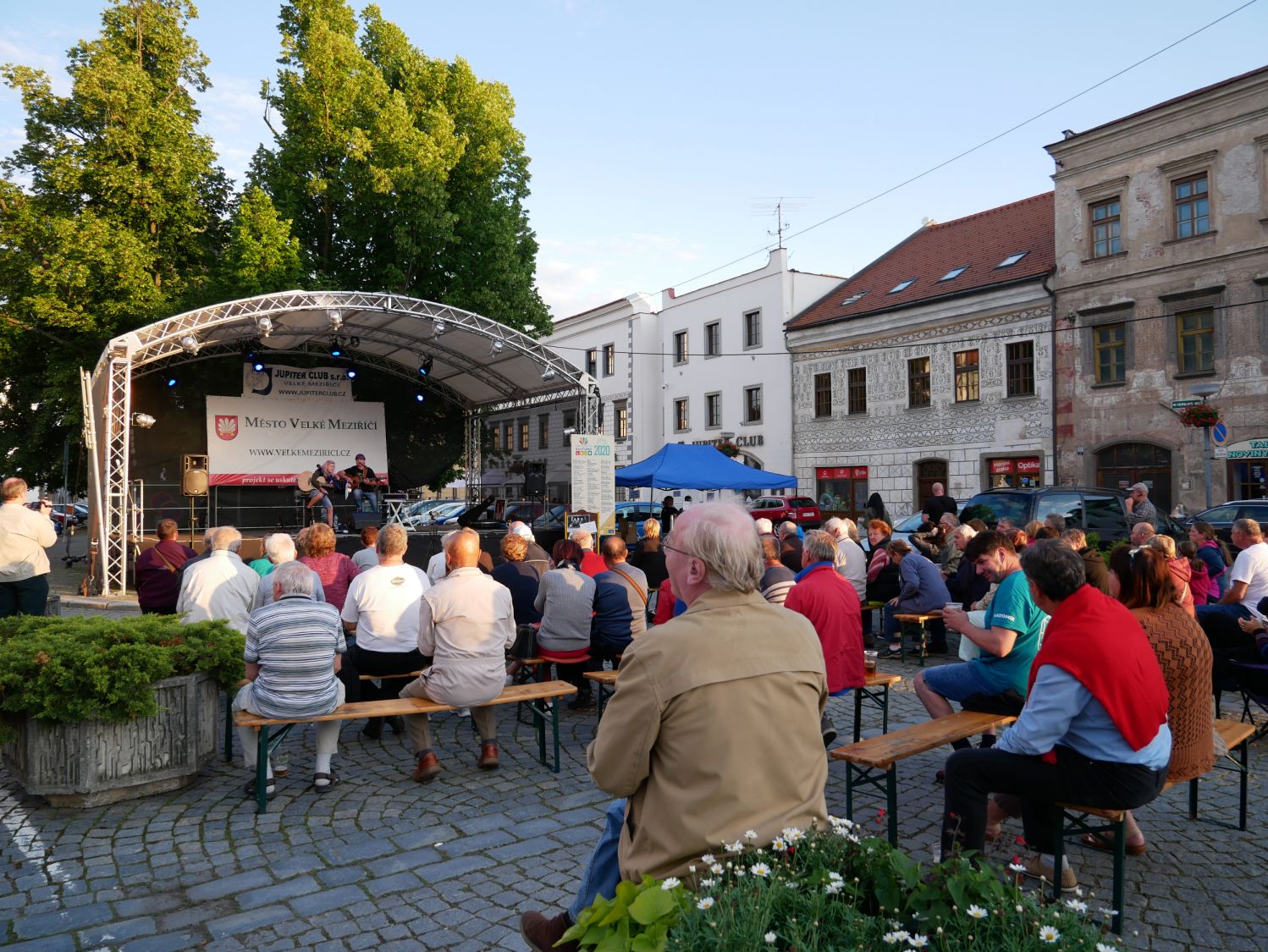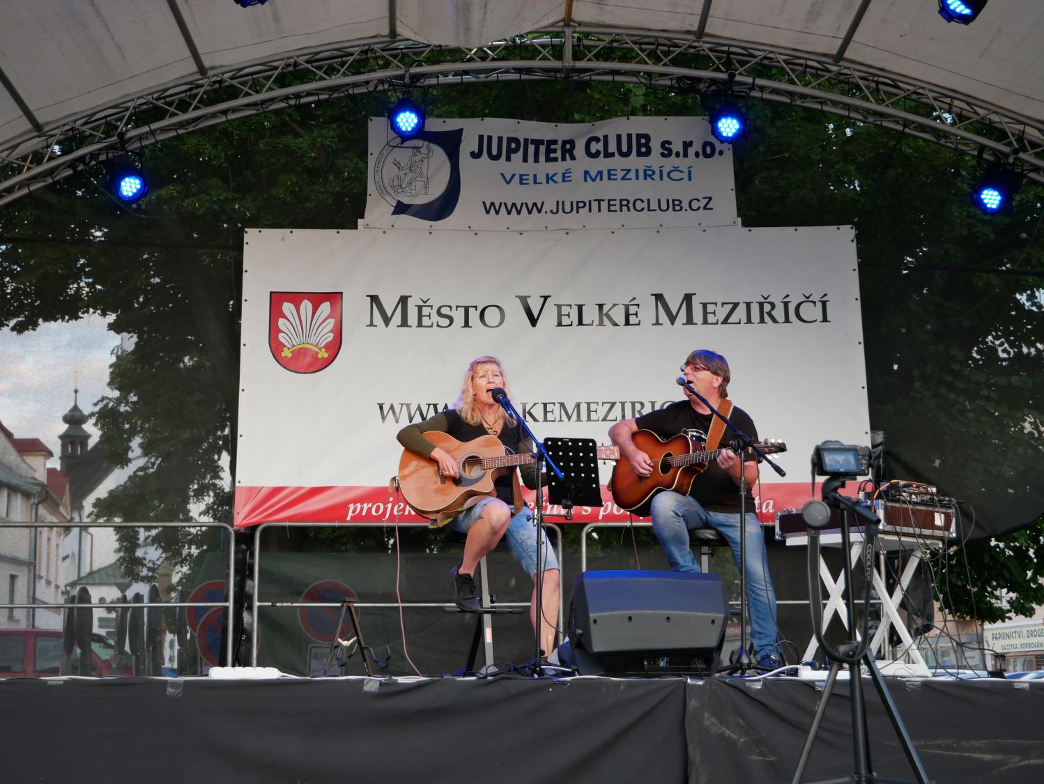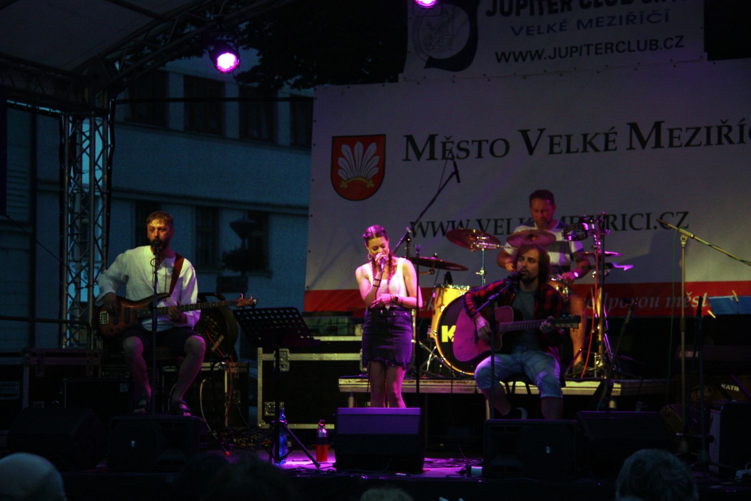 V závěru druhého červencového týdne se na velkomeziříčském náměstí představila hudební kapela Ty a My. Tato skupina je v našem městě již podruhé a i přes chladné počasí si ji přišlo poslechnout několik desítek posluchačů.