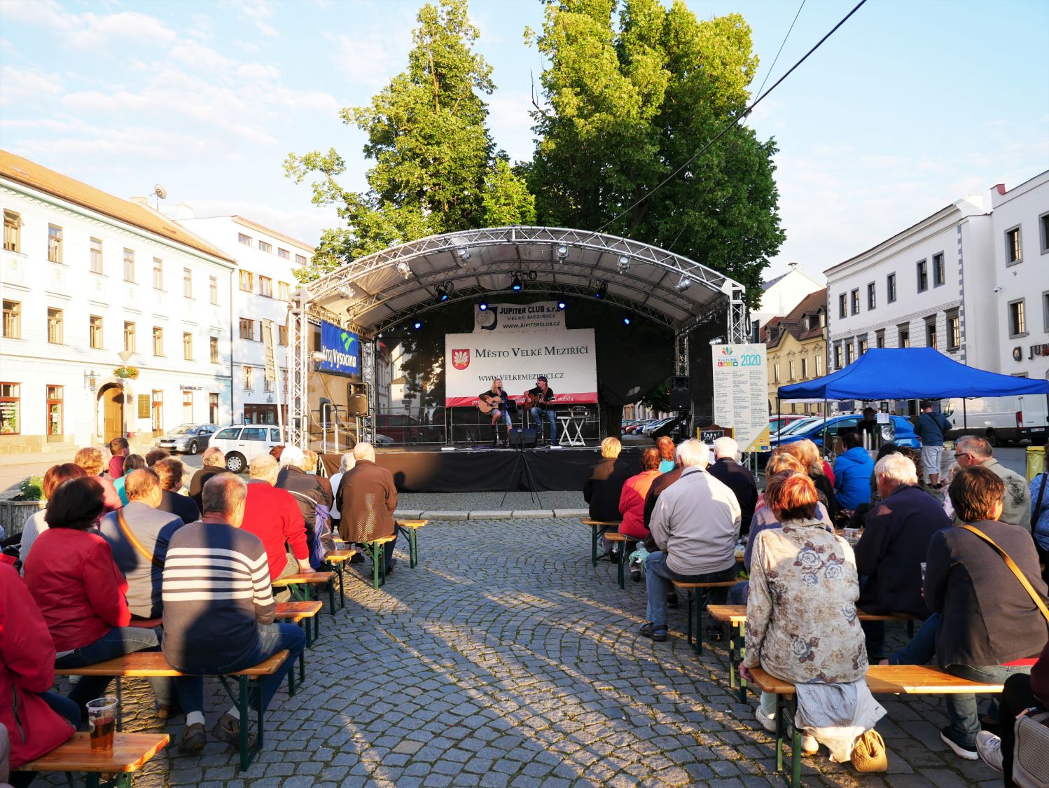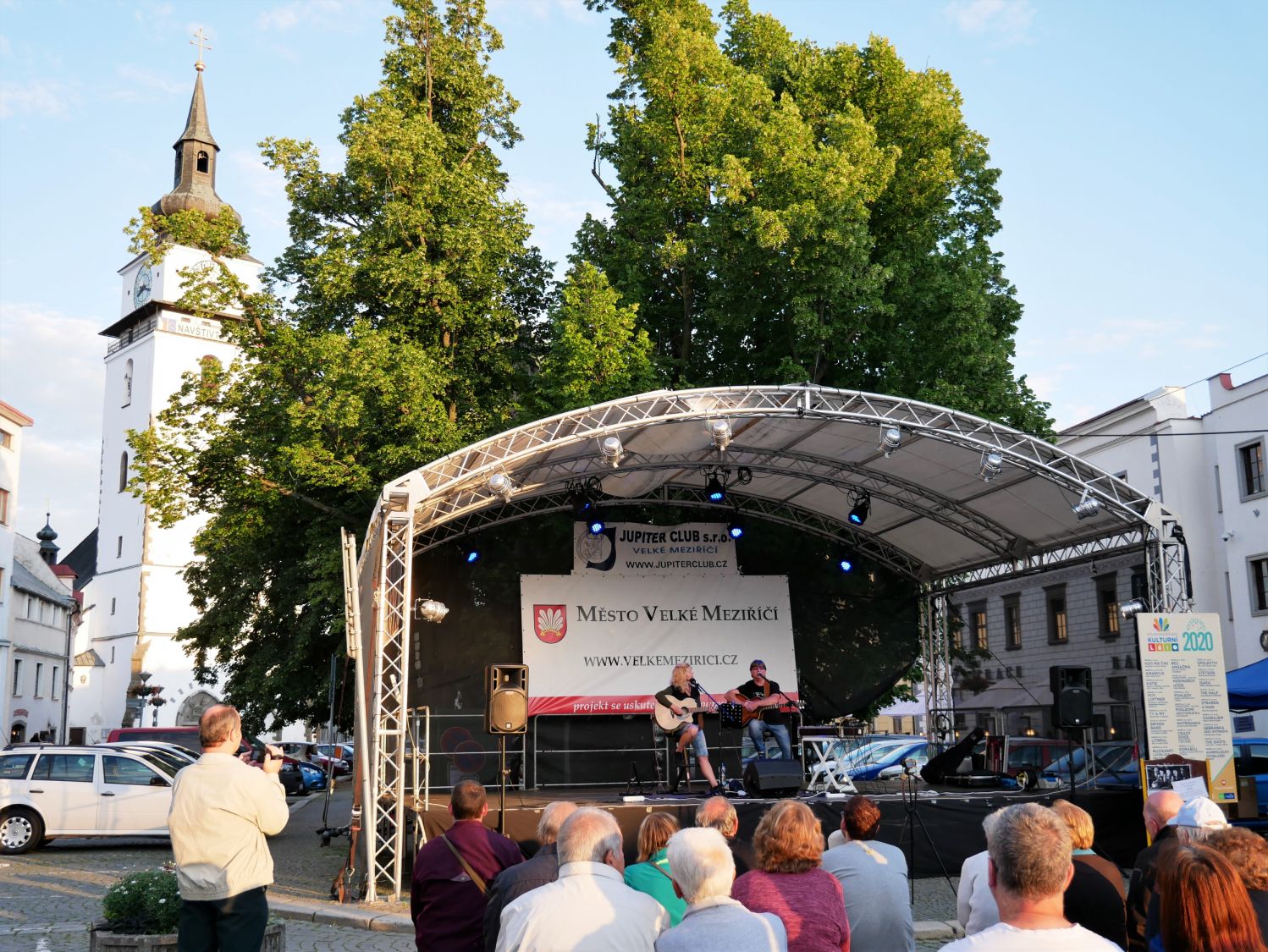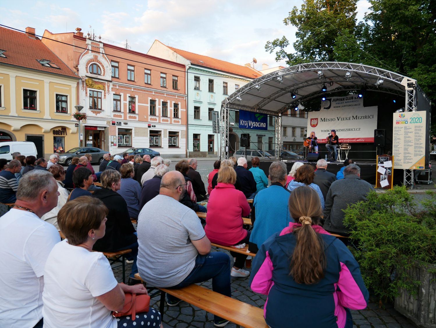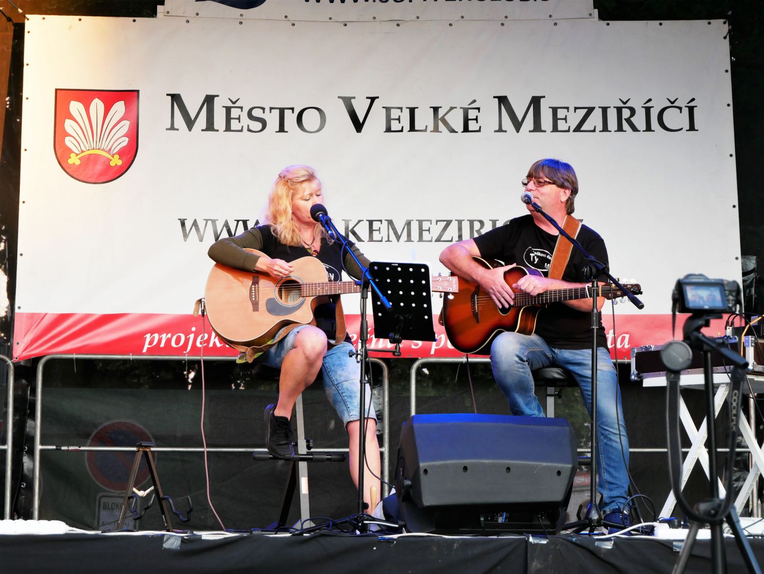 V závěru druhého červencového týdne se na velkomeziříčském náměstí představila hudební kapela Ty a My. Tato skupina je v našem městě již podruhé a i přes chladné počasí si ji přišlo poslechnout několik desítek posluchačů.