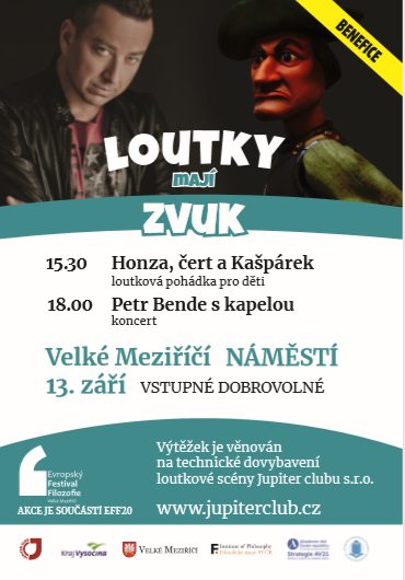 V rámci doprovodného programu bych vás rád pozval do kina na páteční film Nákaza. Nedělní odpoledne se na náměstí představí loutkáři z loutkohereckého souboru při Jupiter clubu. Zahrají pohádku Honza, čert a Kašpárek. Následovat bude koncert Petra Bendeho s kapelou. Na závěr festivalu se představí v rámci komorního koncertu Mariia Mikhailova ve hře na flétnu a Libor Janeček ve hře na kytaru. Velký dík za finanční podporu náleží městu Velké Meziříčí, které je generálním partnerem festivalu. Finančně podporuje festival také Kraj Vysočina. Prestižní pro festival je podpora Akademie věd ČR. Odbornou garanci festivalu od prvního ročníku poskytuje Filosofický ústav AV ČR a Filozofická fakulta Masarykovy univerzity v Brně. Organizačně festival zabezpečuje Jupiter club s programovým výborem festivalu. Všem bych chtěl za spolupráci velmi poděkovat.