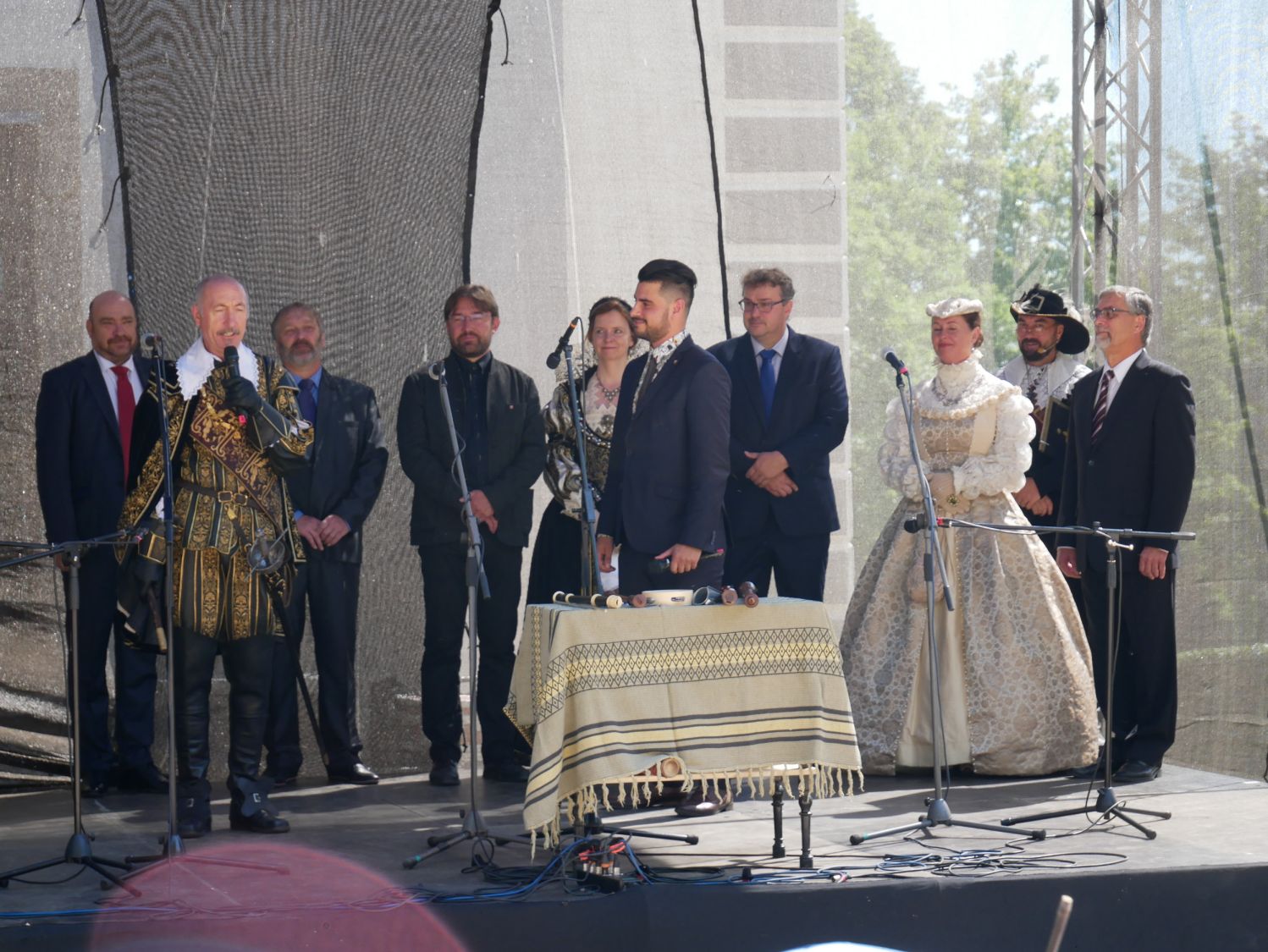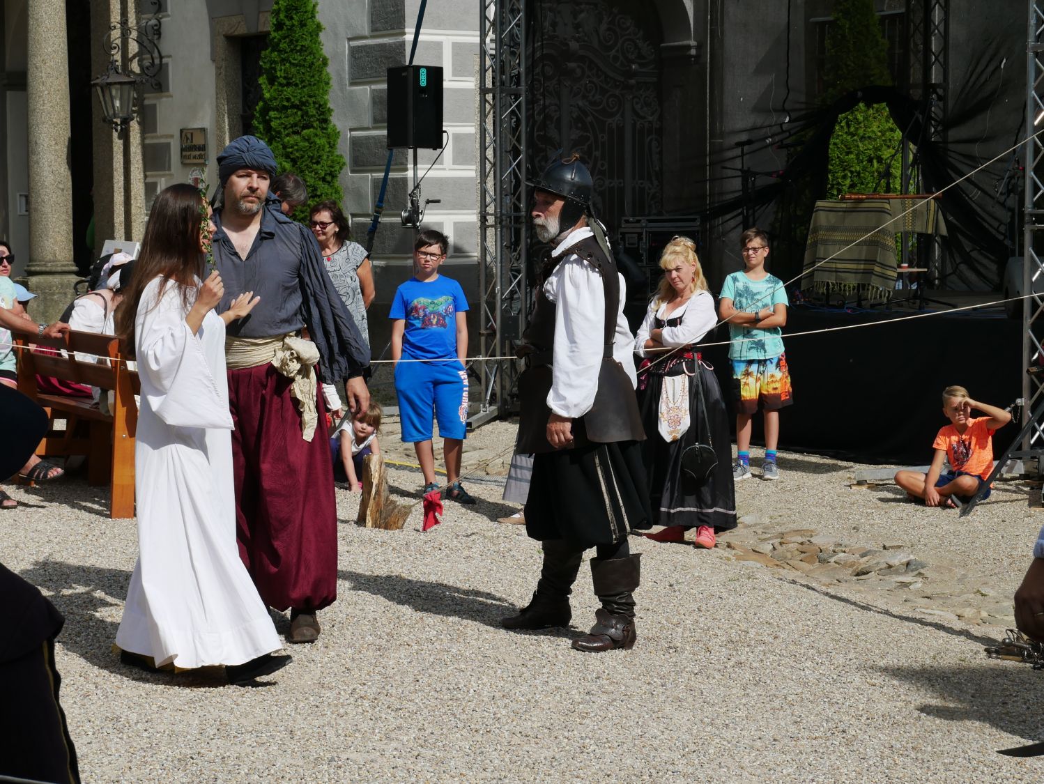 Sobotní historické slavnosti se odehrávaly zejména na zámeckém nádvoří. V přilehlém parku byl k vidění rozsáhlý dobový vojenský tábor. Nabitý program od rána až do pozdního odpoledne obsahoval divadelní šermířské představení, kejklíře, tance, středověkou hudbu v podání kapely Zanyka i nástup vojenských jednotek. Co by to bylo za dějinné slavnosti, kdyby vojska čítající bezmála 200 účastníků slavnostně nepřivítala Albrechta Václava Eusebia z Valdštejna s jeho chotí. Na pódiu vystoupila také městská rada, v čele se starostou Alexandrosem Kaminarasem, aby promluvila s jedním z nejvyšších velitelů vojsk během třicetileté války, již zmíněným Albrechtem z Valdštejna.