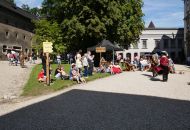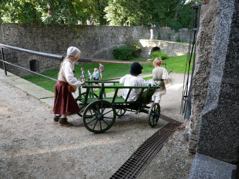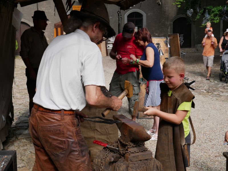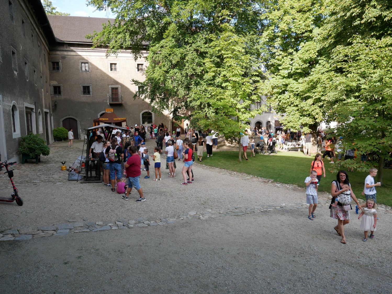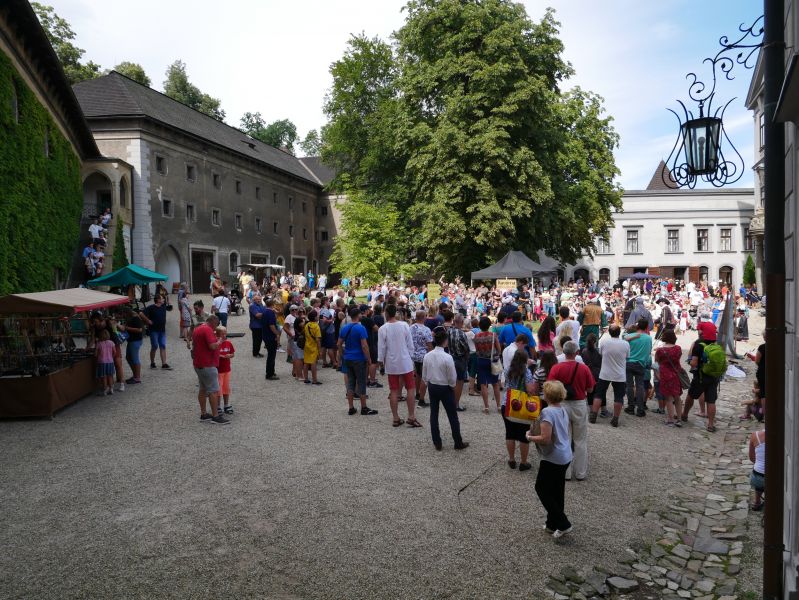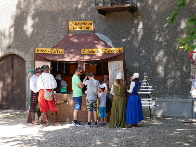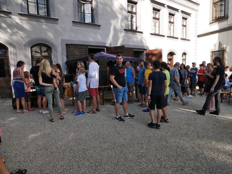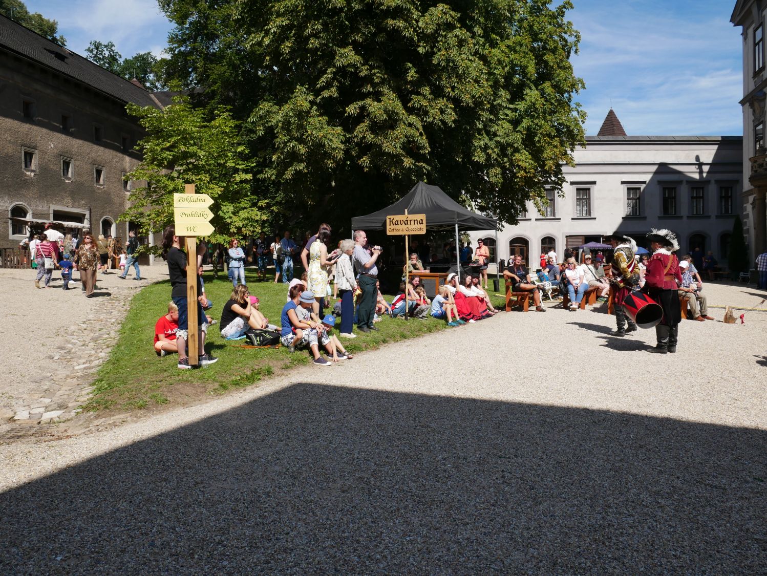 Po celý den měli návštěvníci možnost ochutnat stylové občerstvení, prohlédnou si ukázky řemeslných prací nebo absolvovat prohlídku vnitřních prostor zámku i sálu s freskovou výzdobou.