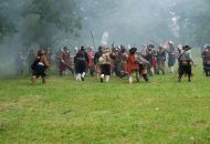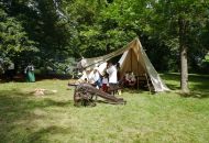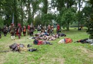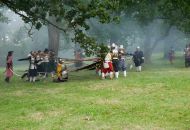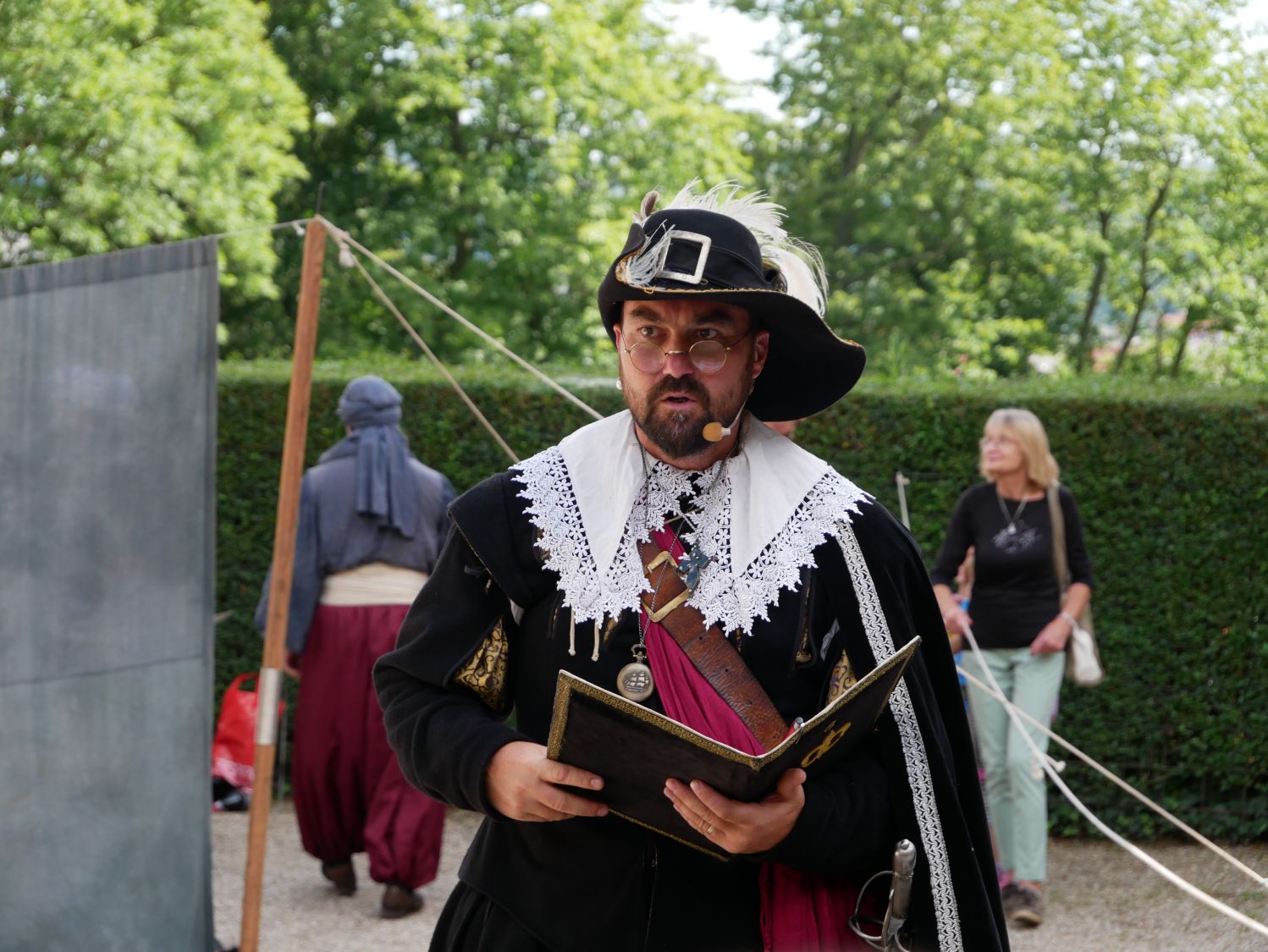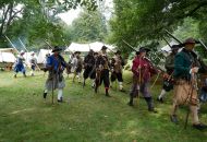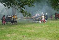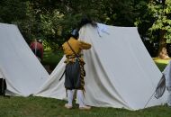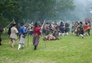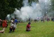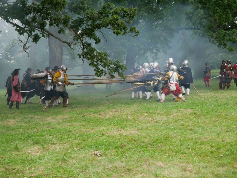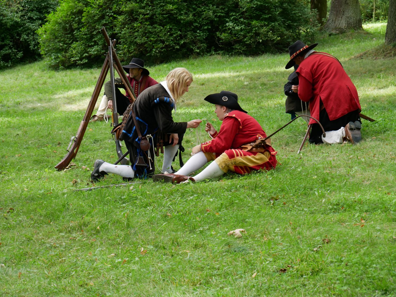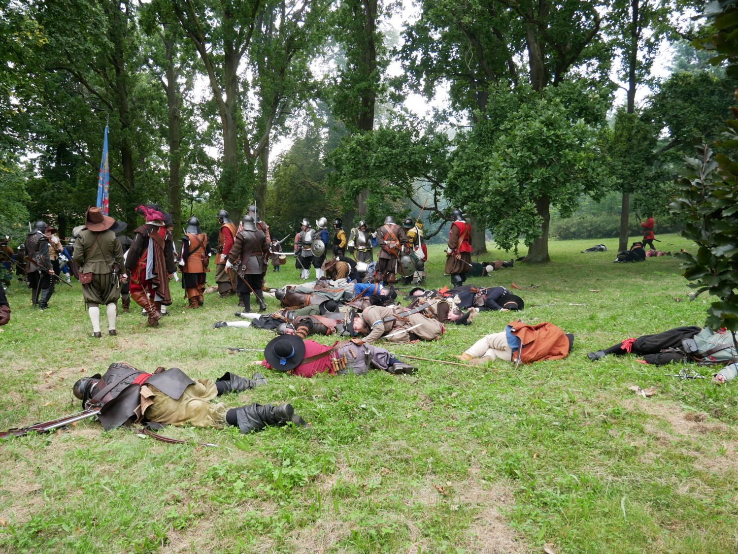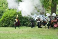 Výstřely, dým, vojáci i pikenýři, tak vypadala vojenská šarvátka v parku. Velkomeziříčská domobrana vzdorovala Švédům, kteří ale byli v přesile. Když už to vypadalo beznadějně, přišla meziříčským válečníkům na pomoc armáda pod vedením Albrechta z Valdštejna. Po ukrutném boji zachránila město od rabování a vypálení. Švédové museli uznat svoji porážku.