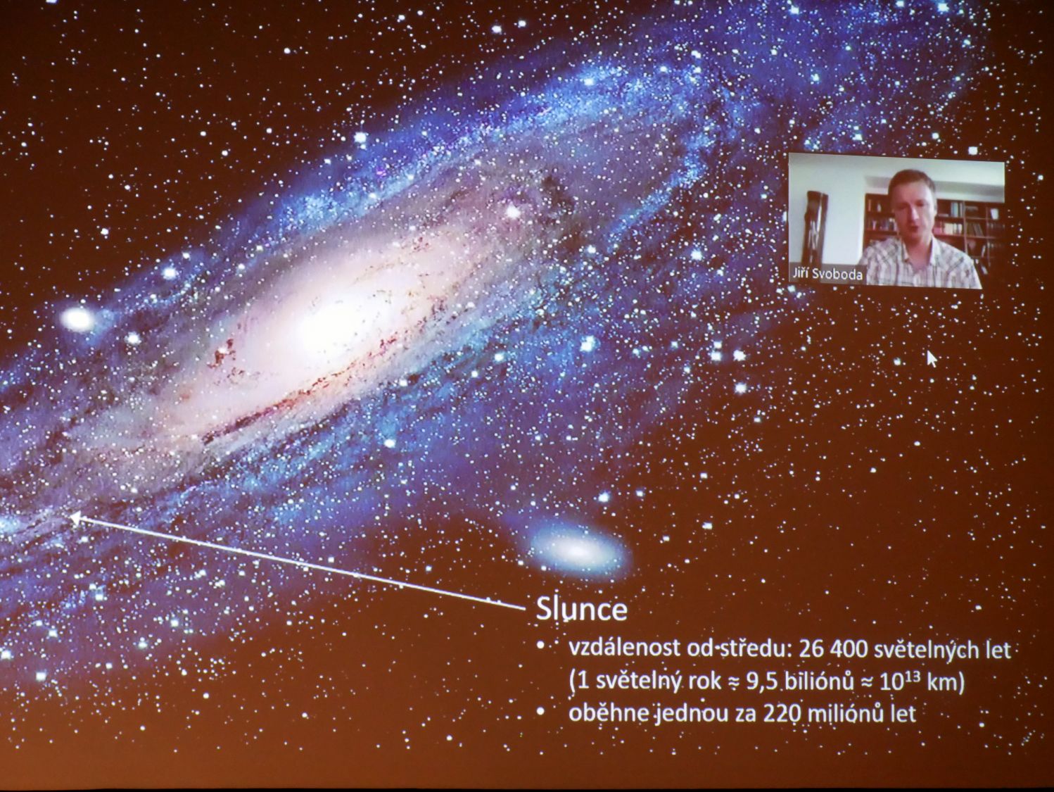 První online přednáška se zaměřila na Hrozby pro život na Zemi a začala stručným vhledem do historie. „Současnou největší hrozbou je Planetka 99942 Apophis, která Zemi mine o pouhých 30 000 kilometrů, a to 13. dubna 2029," uvedl Svoboda a doplnil, že nebezpečí tkví právě ve vzdálenosti, kde už se nacházejí družice. Posluchači se dozvěděli o možnostech hrozeb pro naši planetu i o jejich pravděpodobnosti. Například sluneční erupce se vyskytují jednou za 100 až 400 let, ale za následek mají výpadek elektrické sítě. Poslední taková událost nastala v noci z 1. na 2. září 1859, kdy erupce na Slunci zapříčinily vyřazení telegrafů. „Největší hrozbou lidské civilizace je lidstvo samotné," uzavřel přednášku Svoboda.