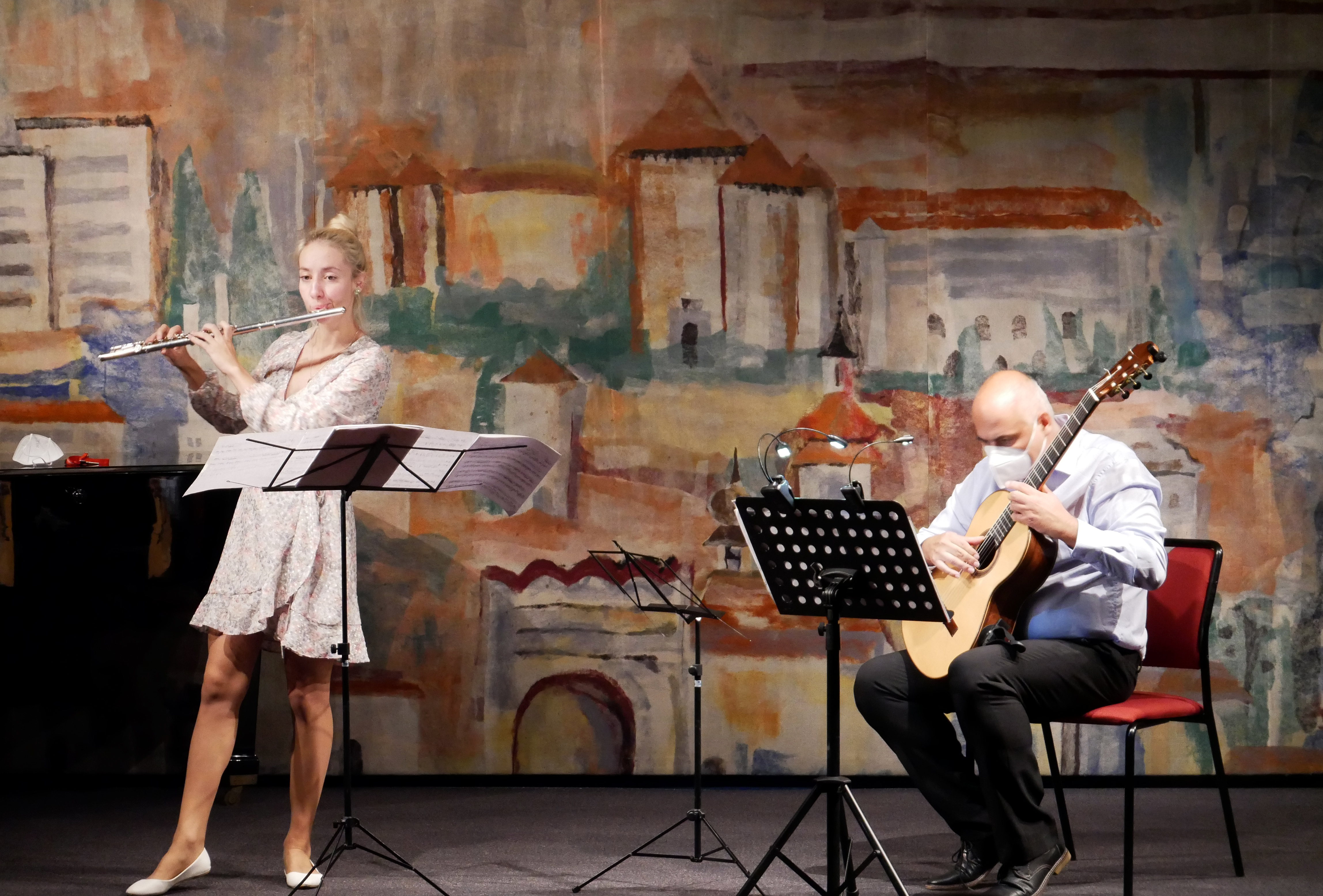 Pomyslnou tečku za letošním filozofickým festivalem udělal koncert komorní hudby kytaristy Libora Janečka a flétnistky Mariie Mikhailovny. V jejich úpravě zazněla hudba českých skladatelů z doby baroka i klasicismu, ale také skladby soudobých autorů.