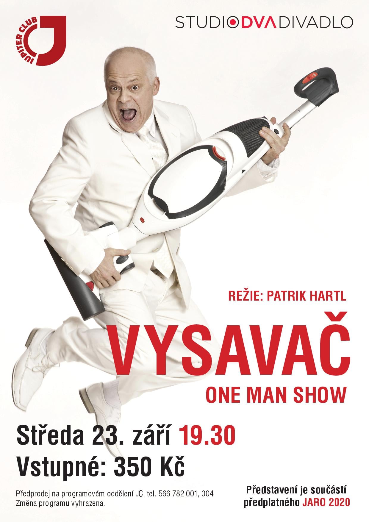 Jupiter club uvede dnes (23. září) ve velkém sále vyprodané představení Vysavač. Jedinečnou one man show odehraje herec s komediálním talentem Bohumil Klepl. Diváci se mohou těšit na zamilovaného uklízeče z nákupního centra, jehož scénář připravil Patrik Hartl. Autor a zároveň i režisér napsal představení přímo pro herce Bohumila Klepla, který okoření milostný příběh vtipnými eskapádami i hrdinskými kousky. Na představení platí permanenty z jara 2020.