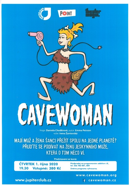 Na jaře loňského roku vyprodalo představení Caveman v podání herce Jana Holíka velký sál Jupiter clubu. Ve čtvrtek 1. října se mohou diváci těšit na volné pokračování kultovní one man show Caveman, které se nazývá Cavewomen. Komediální představení odehraje Daniela Choděrová, která nabídne zamyšlení nad soubojem obou pohlaví i trochu jiný pohled na partnerské vztahy. Cavewomen poodhalí i témata, o kterých se běžně nemluví.