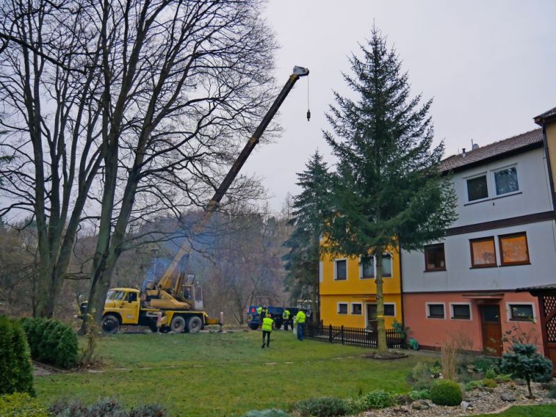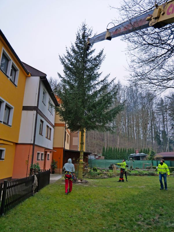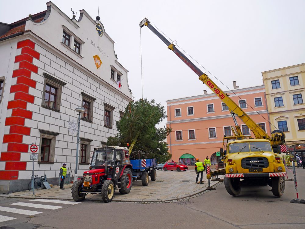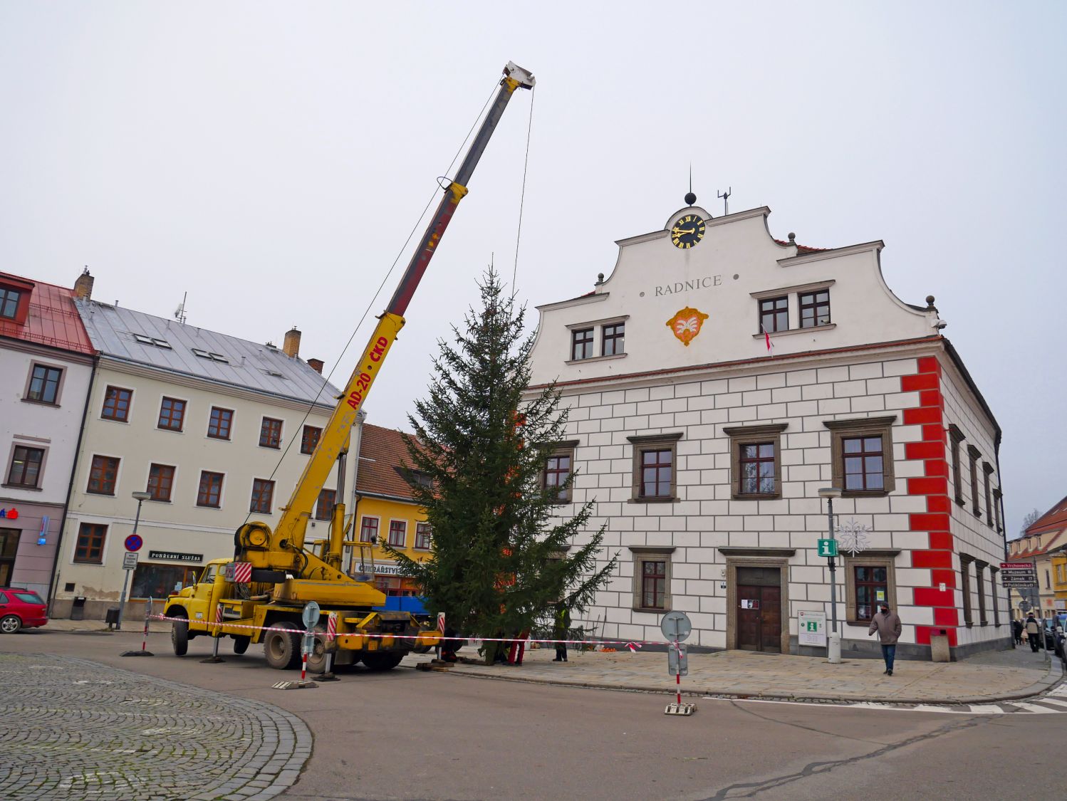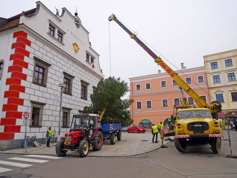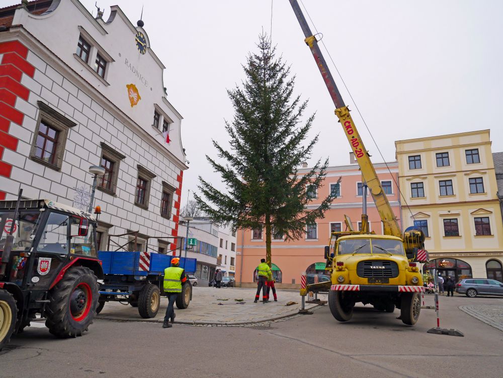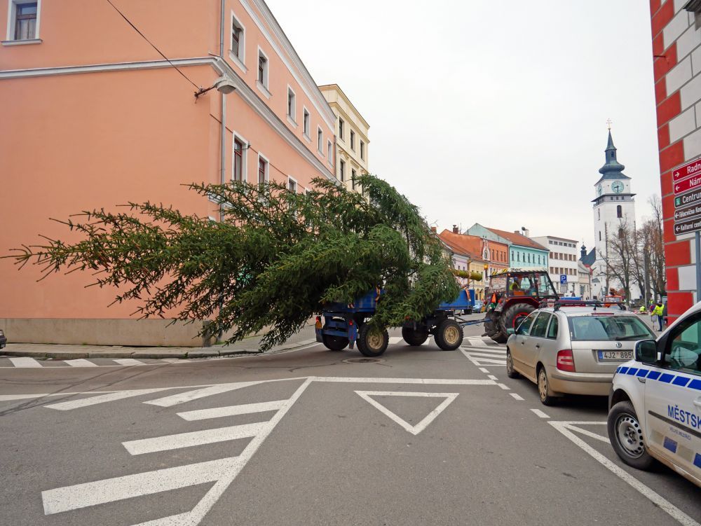 Od dnešního rána zdobí prostor před radnicí vánoční stromeček. Téměř třicet let stál smrk ztepilý v ulici Příkopy, za jeho dar město děkuje Jaroslavovi Žitníkovi. Dvanáct a půl metru vysoký smrk pokácely technické služby v pondělí 23. listopadu a ihned ho za asistence městské policie a jeřábu ukotvily před radnici. Nyní už je symbol Vánoc usazený na svém místě a čeká na ozdobení.