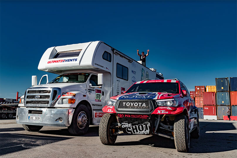 Odletem ale komplikace nekončí. Po příletu do Saúdské Arábie musí celý tým do další karantény, tentokrát dvoudenní, a teprve po následném saúdském PCR testu s negativním nálezem, může tým v přístavu svoji techniku vyzvednout. Poté je na řadě testovaní techniky a technické přejímky". Opravdu platí slova ředitele Dakaru Davida Castery: „Každý, kdo se opravdu za těchto podmínek dokáže postavit na start, je hrdina."
