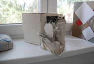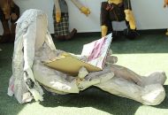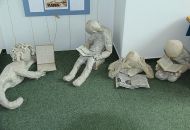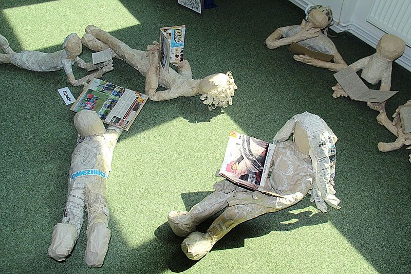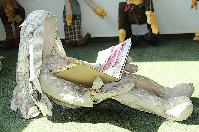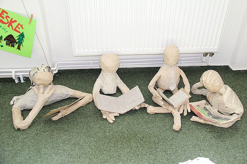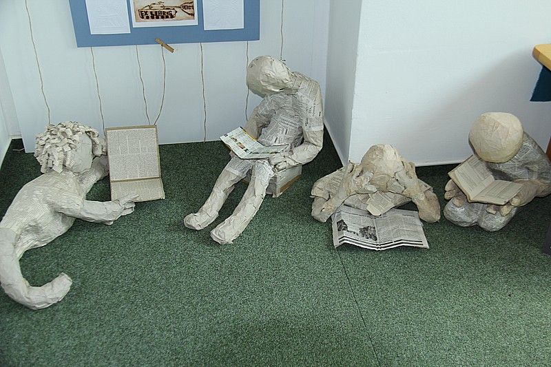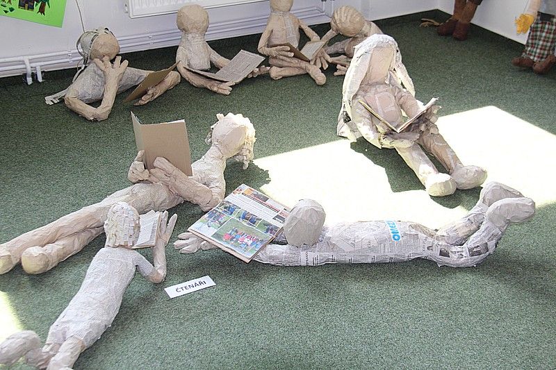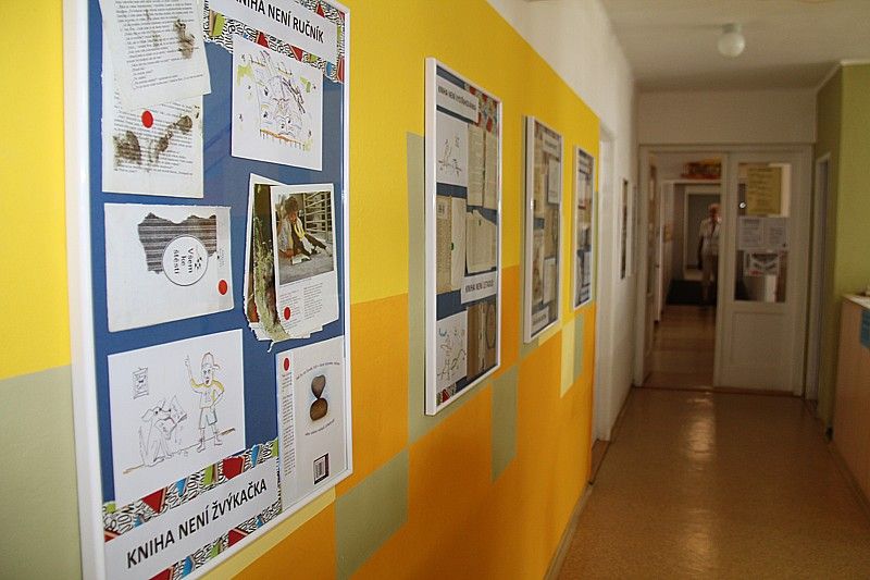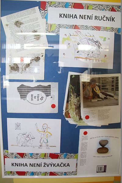 Na chodbě knihovny v oddělení pro děti a mládež je současně instalována "přehlídka špatného zacházení" - minivýstavka ředitelky Ivany Vaňkové s názvem Chuděra kniha.