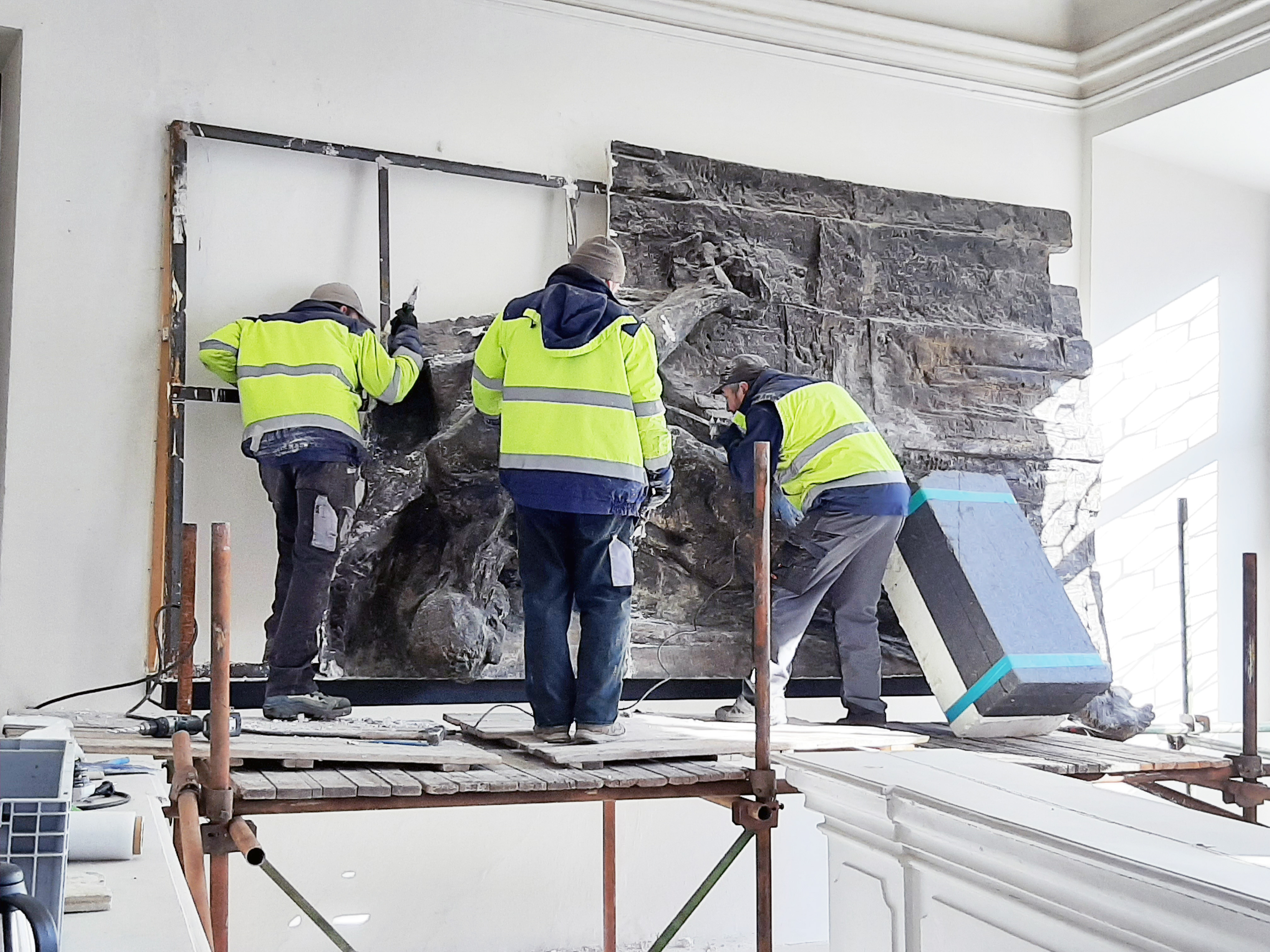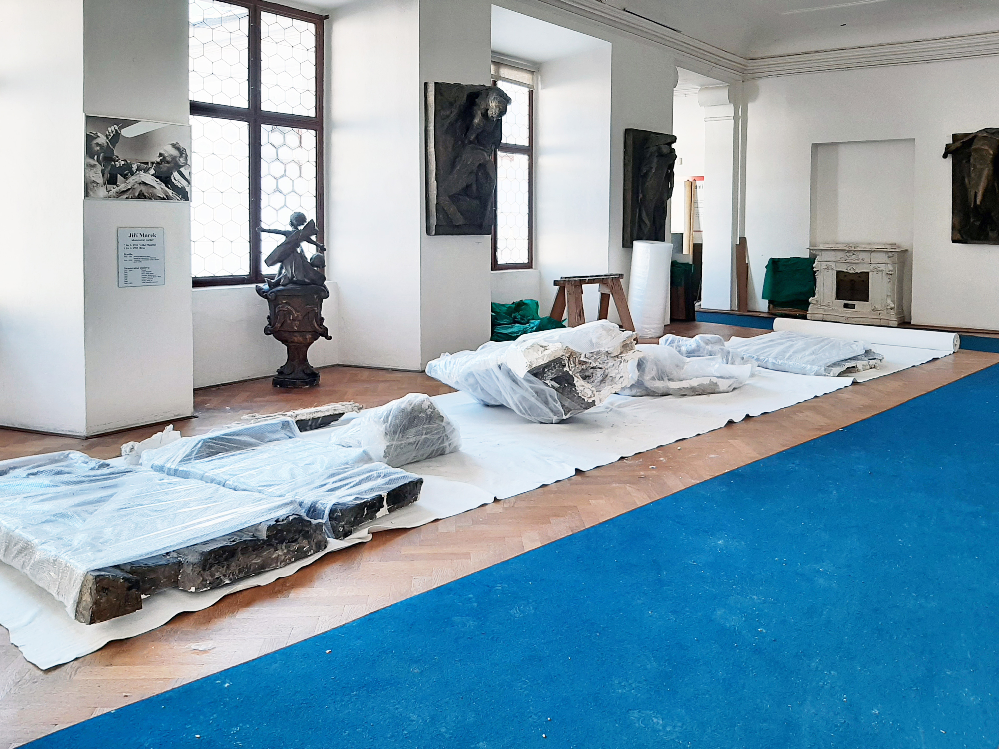 První velké práce začaly ve vstupním vestibulu druhého patra, kde byly doposud vystaveny plastiky od sochaře Jiřího Marka. V průběhu třetího únorového týdne pracovníci díla velkomeziříčského rodáka odborně sejmuli, zabalili a uložili do depozitáře. Plastika Vlastenec o rozměrech 250 x 430 cm a tři zastavení křížové cesty jsou v muzeu od roku 1995. V současné době vyklizený vstupní vestibul čeká na plánovanou výmalbu.
