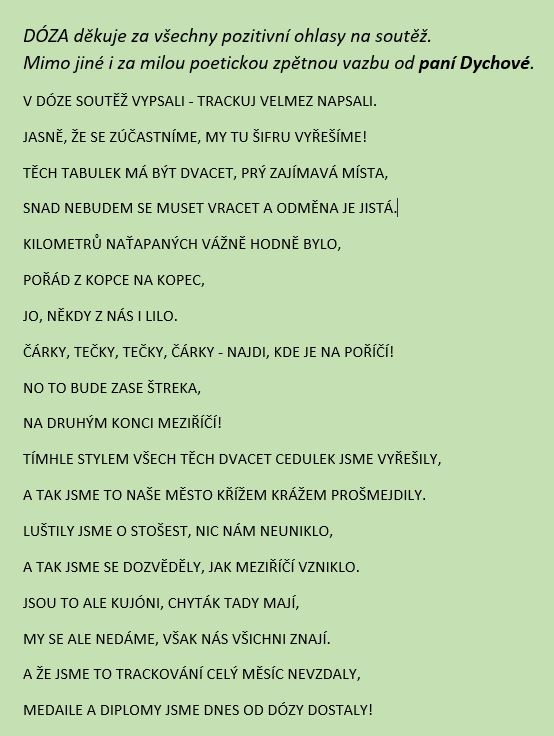 DÓZA děkuje za účast v soutěži TRACKuj VelMez jaro 2021