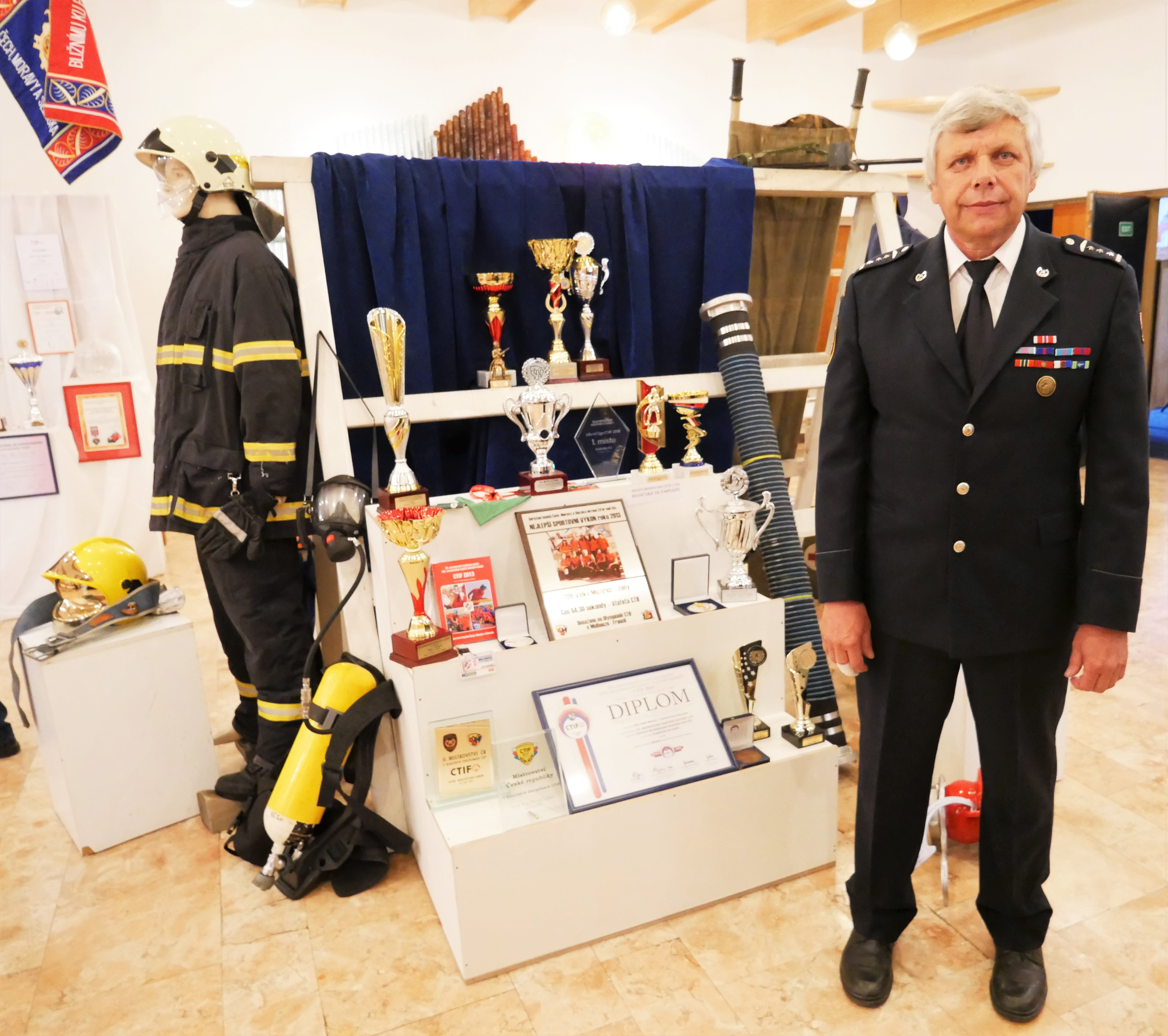 Po panu Stanislavu Kratochvílovi převzal slovo místostarosta Velkého Meziříčí, pan František Smažil. Následně jsme mohli slyšet vlídná slova od pana Jana Slámečka, který je starostou sdružení hasičů Čech, Moravy a Slezska. Na závěr vernisáže se v kinosále promítal film, který hasiči vytvořili již ke 110. výročí.